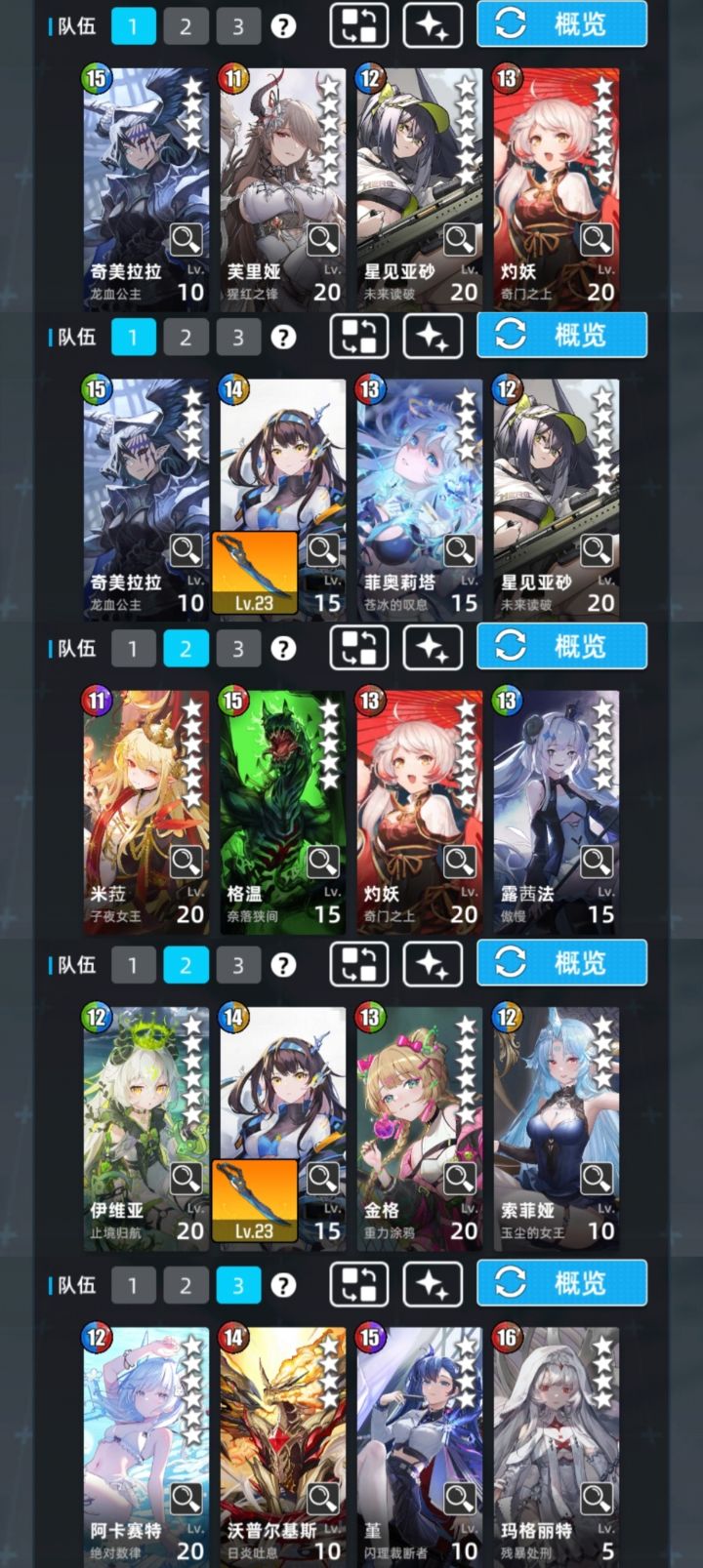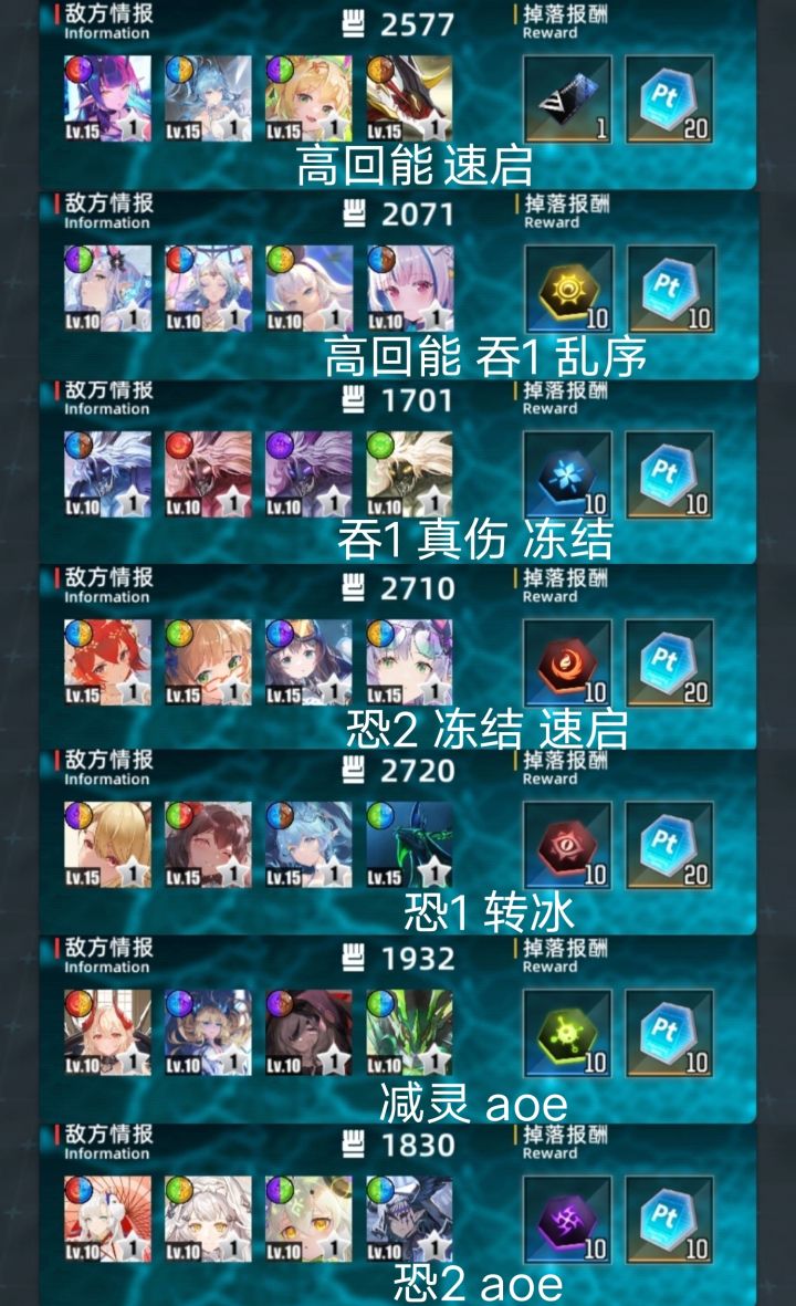 整体略难。门神略难,道中部分难。免吞常规2个。免恐8个较少,但只能菲琳间接。机制较多。真伤少,盾可用。aoe常规,刀、开门杀较多,二礼包可高层。三图。一队菲奥。菲琳回能3412。暴食回能3412。二队厄队4312。(仅在冰厄的余晖还是很闪耀)三队吞队3412。四位可沉默离玖等。最后睡队。自己组吧。冰队新卡芙蕾优化用,提升不了多少强度。六星还出不来呢,虽然能给机械型非毒属加灵力的