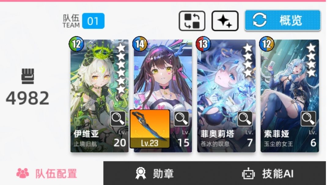 实机演示,比较难打菜刀。全员5级不需要天赋。要做好翻车概率,理论上35天满勤可以搬完奖励,但是这套阵容肯定存在翻车率(要做好心理准备)。 一号位:月海的舞姬 塔维菈 二号位:雪解春华 罗莎娜 三号位:硕鼠(蚀) 四号位:幽世幻花 菲林。 二号位可以换成绀海绮境 伊欧,但是获取难度比之前的高(最好把月海和绀海绮境拉10级,有萌新反馈容易翻车) 技能顺序2143,优先四消。视频内没带徽章但是有工会属性