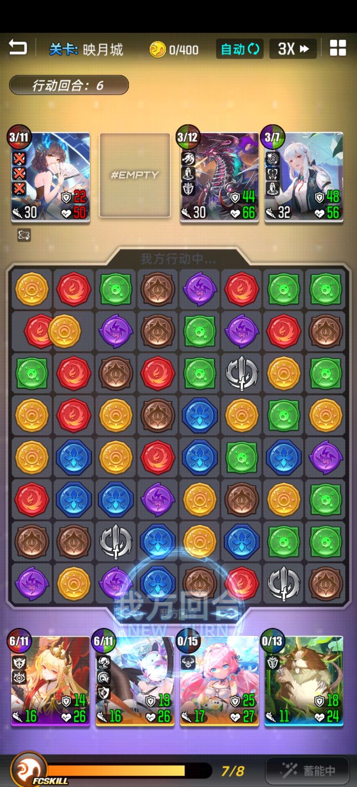 映月城攻略恐惧吞灭队,不推荐其他队是因为其他队伍就很吃等级和天赋。我自己都只有一个二十级,天赋太缺了。奖章带雷毒冰,再次强调七七和拉菲一定要做,新手优先。打法就很简单,七七一号位释放技能,四消优先。自己快死人的时候就退出重打,过一次关就有桃子,建议攒票。