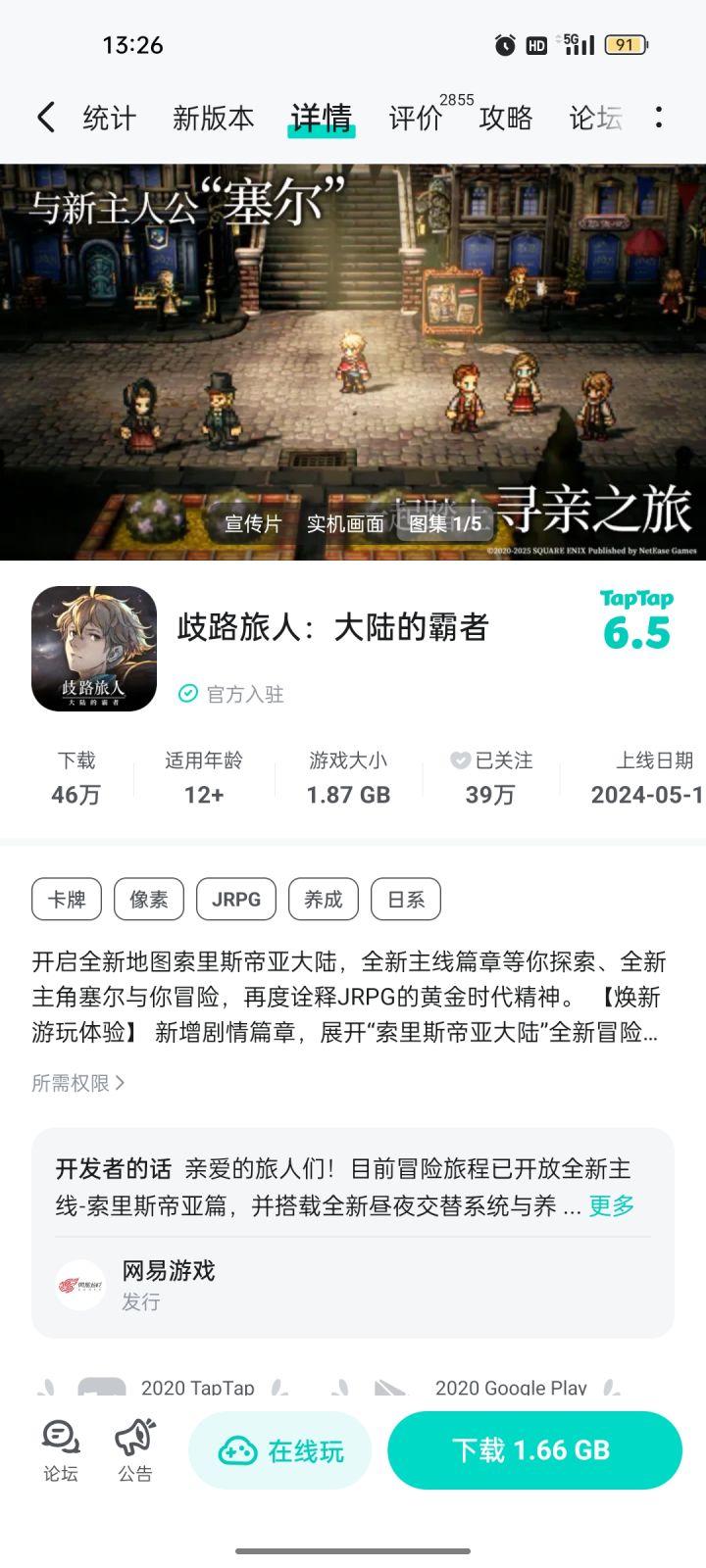 游戏名称:歧路旅人:大陆的霸者游戏发售平台:iOS/Android(手机端) 游戏时间:25年7月推荐人群:喜欢jrpg与像素画风的人 《歧路旅人:大陆的霸者》是我心中移动端JRPG的天花板级作品。关于它的前作《八分旅人》,我虽然早有耳闻但是一直没有体验,在接触歧路旅人后,我被它的群像叙事深深吸引,每一条主线都刻画得细腻深刻,支线任务也充满了小人物的温暖与遗憾。它就像一本可以互动的像素