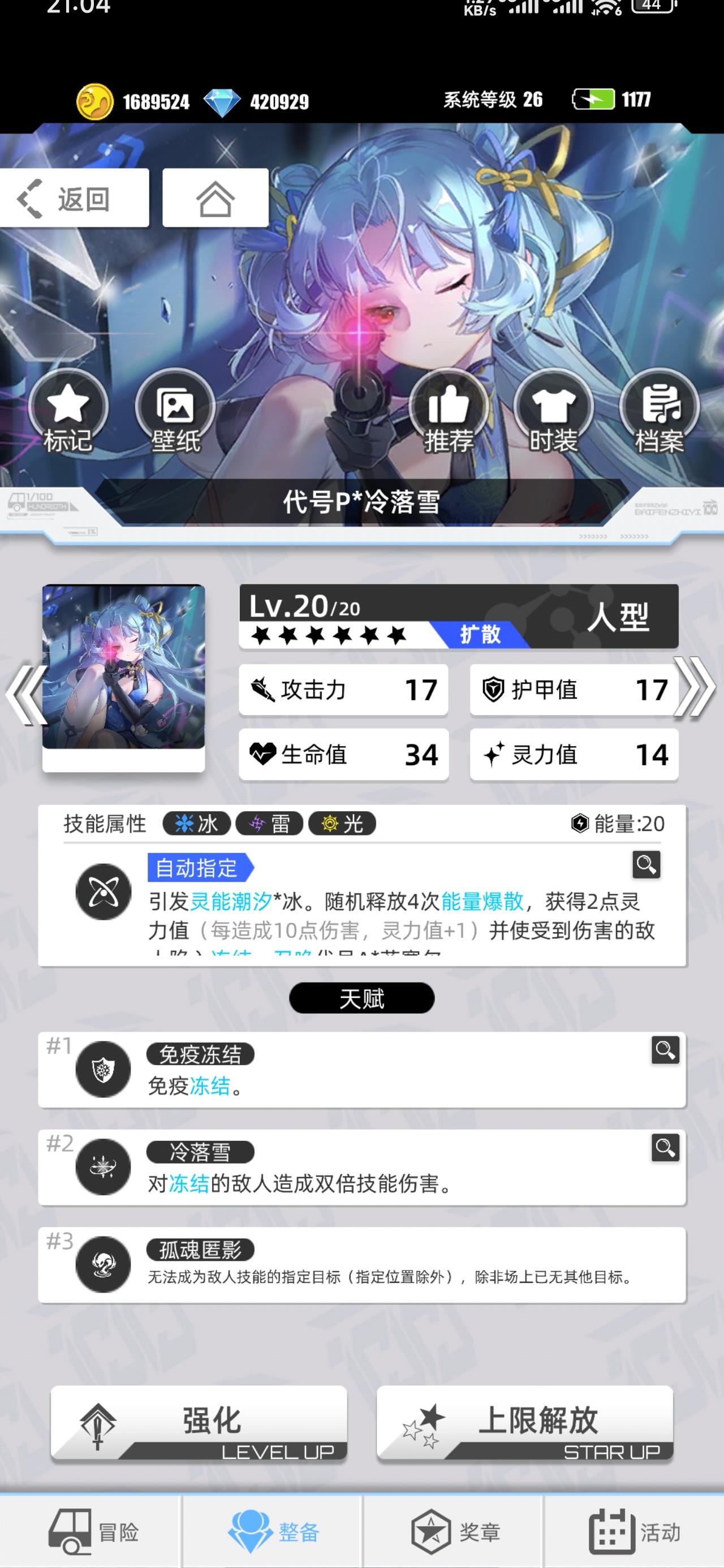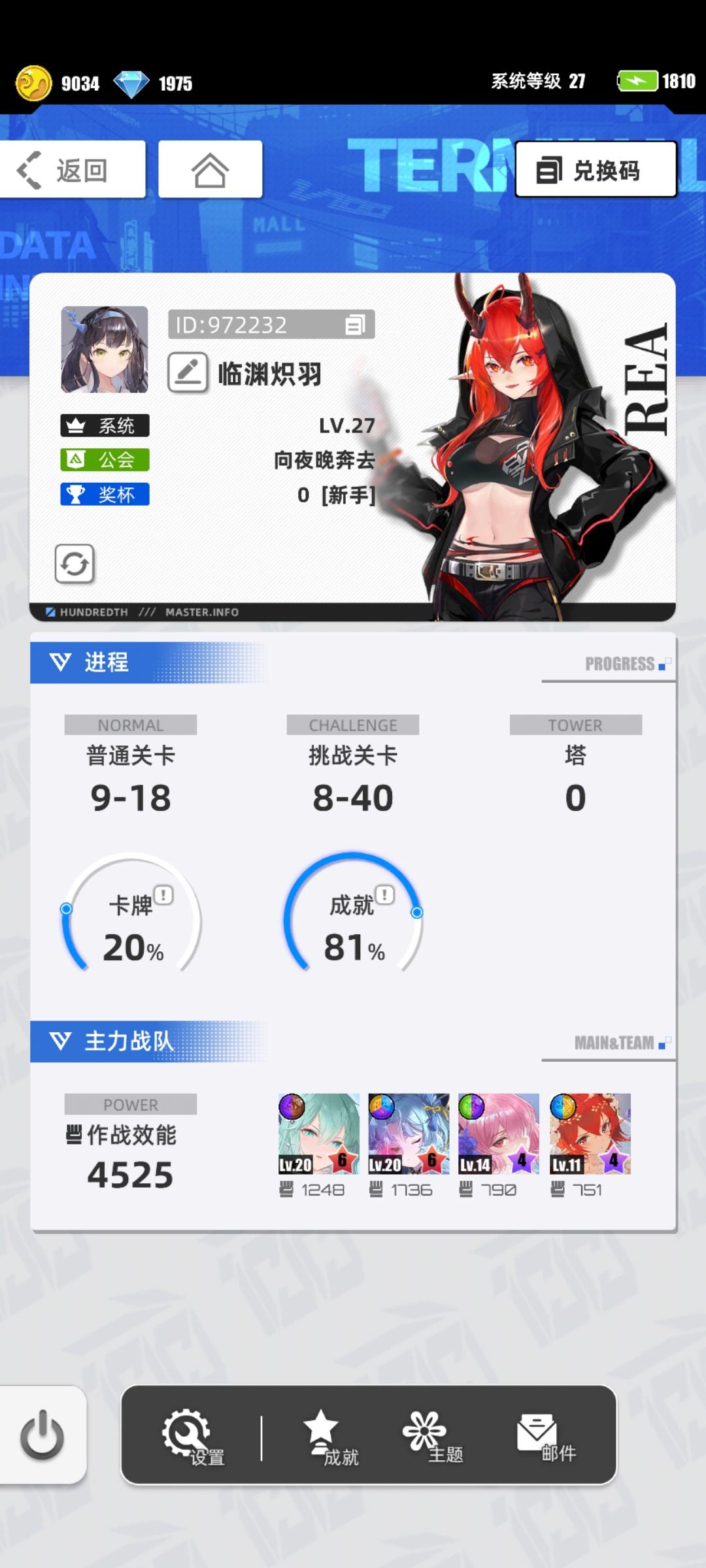 游戏名称:百分之一 发售平台:TapTap 游戏时间:每天1小时 推荐人群:休闲养成收菜党 游戏体验:游戏很休闲,没什么养成烦恼和强度焦虑,每天上线打几把,福利也还行。卡牌也设计的很好,立绘很不错 。 许愿六星卡牌:破晓天狼 克劳迪娅 游戏名称:李 账号ID:962725 #百分之一 #百分之一好玩 服务器:安卓 taptapid: 362384966