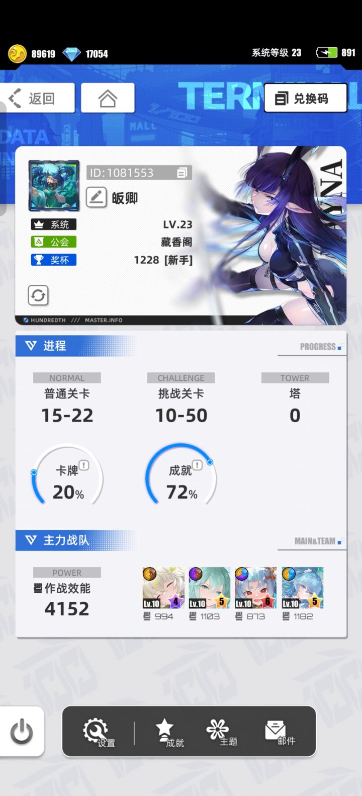 我的百分之一 游戏名称:百分之一 平台:taptap 游戏时长: 第一天 适合人群:休闲副游 游戏体验:tap上预约游戏发现百分之一评分很高,下下来试试看,结果越玩越上头,卡牌立绘不错,就是少了点指引,界面比较多,强化和编队一下子不习惯,总体好评! 许愿六星卡牌:代号P冷落雪 游戏名称:观灵玉藻账号D: 772143服务器:安卓
