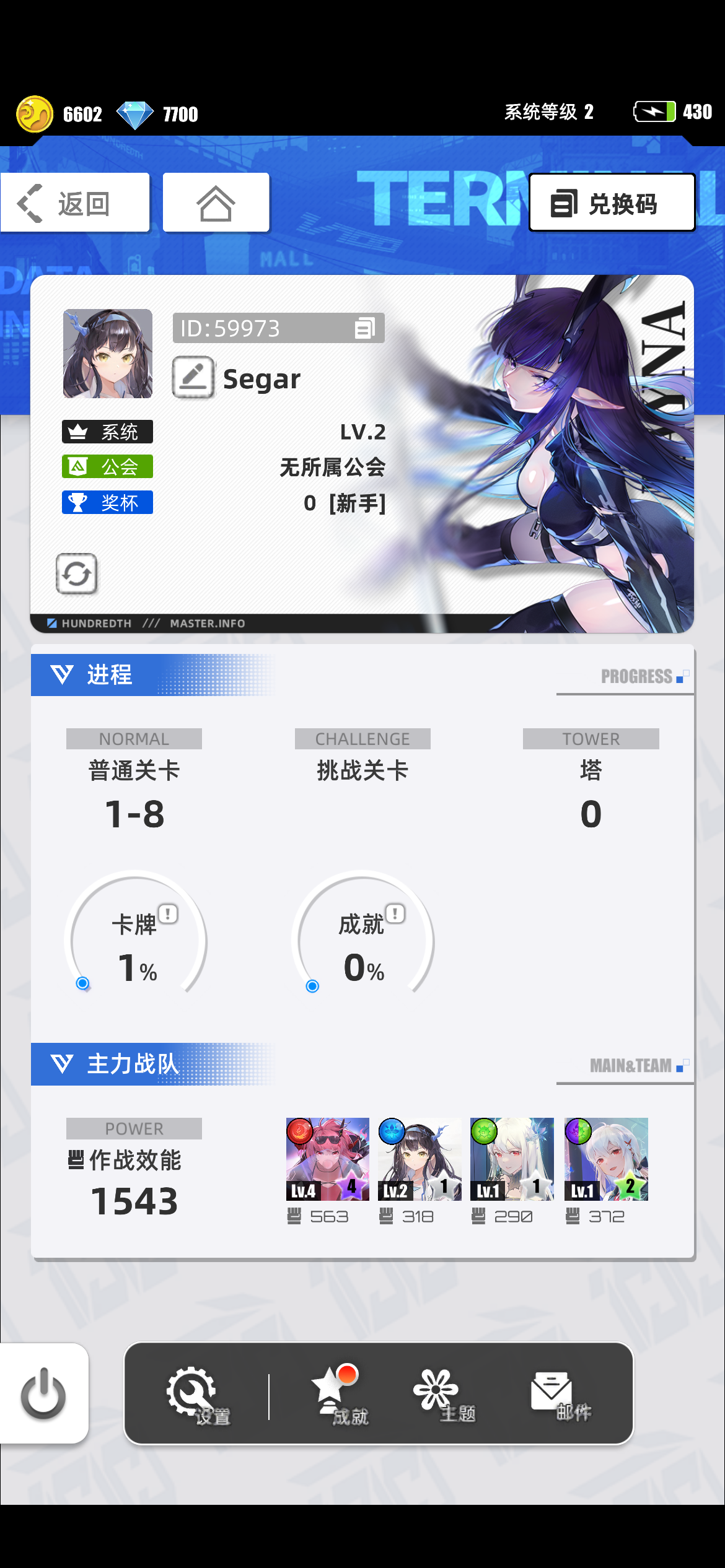 ##我的百分之一 游戏名称:百分之一 游戏平台:TapTap 游戏时长:刚入坑的小透明 一周 适合人群:打发时间的人群 游戏体验:和开心消消乐差不多 画面精美 适合喜欢二次元的玩家 挂机养成 慢慢玩吧 才玩几天有点玩不明白 管理大大看看我~~~🫡许愿六星卡牌:代号P·冷落雪 游戏名 梦璟 游戏id: 1024072