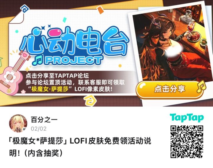 #百分之一 参与活动免费获得像素皮肤来自TapTap[ID: 1041002 凌波丽]