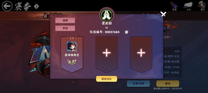 如题 #忍者必须死3 目前二缺一队伍编号 00057684