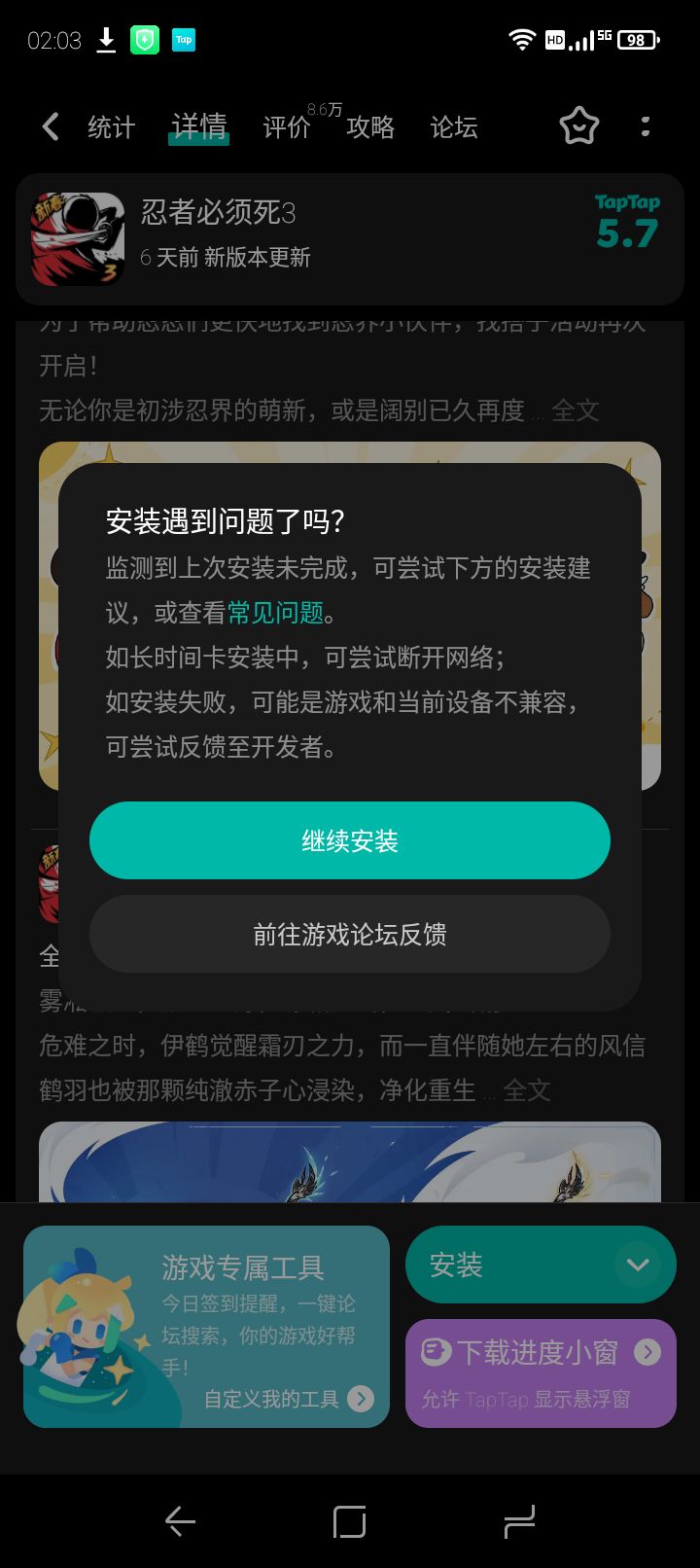 跳转QQ登录后黑屏卡死。尝试重启、更新QQ、给忍死3所有权限,无法解决。
