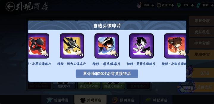 外观商店,皮肤夺宝都多长时间了,不增加新皮肤,不增加新人物的神秘头像,整这个皮肤卷毛用没有了!