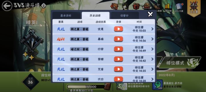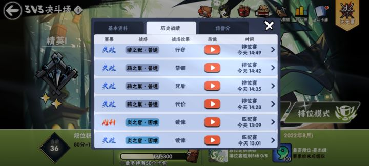 我毎天都是会去打帮朋友打33日常,今天顺便看一下天元前3000的分,一打开发现莫名其妙掉了输了一把,时间是8月22日中午13点01分开的对局。我从8月21号晚上打完图中的死穴对局,我就没在打了。我朋友号的天元分就到了1950多分,基本稳前3000了。但今天上线看了一下天元莫名奇妙的输了一把,时间还是8月22日13点01分的对局,天元那有13点开的啊,而且前面我也说了,帮我朋友稳前3000我就没打