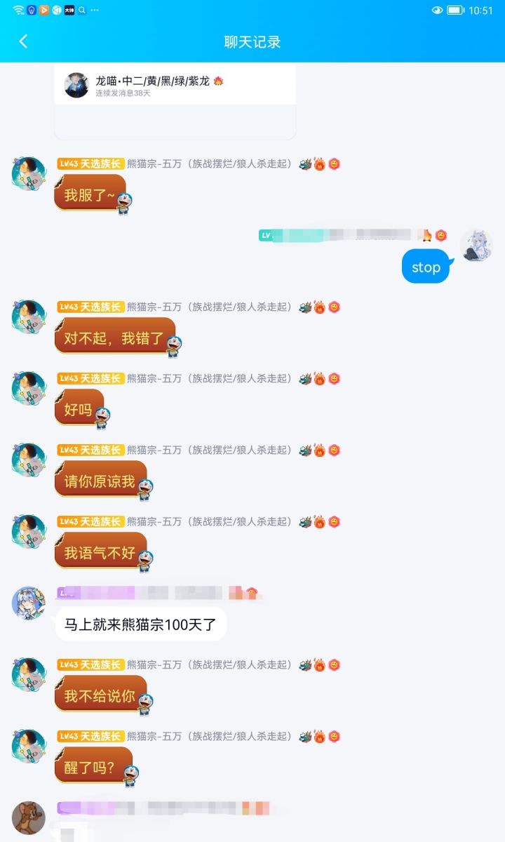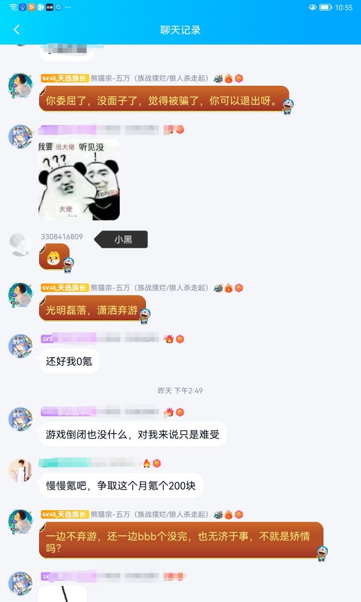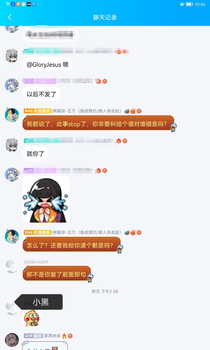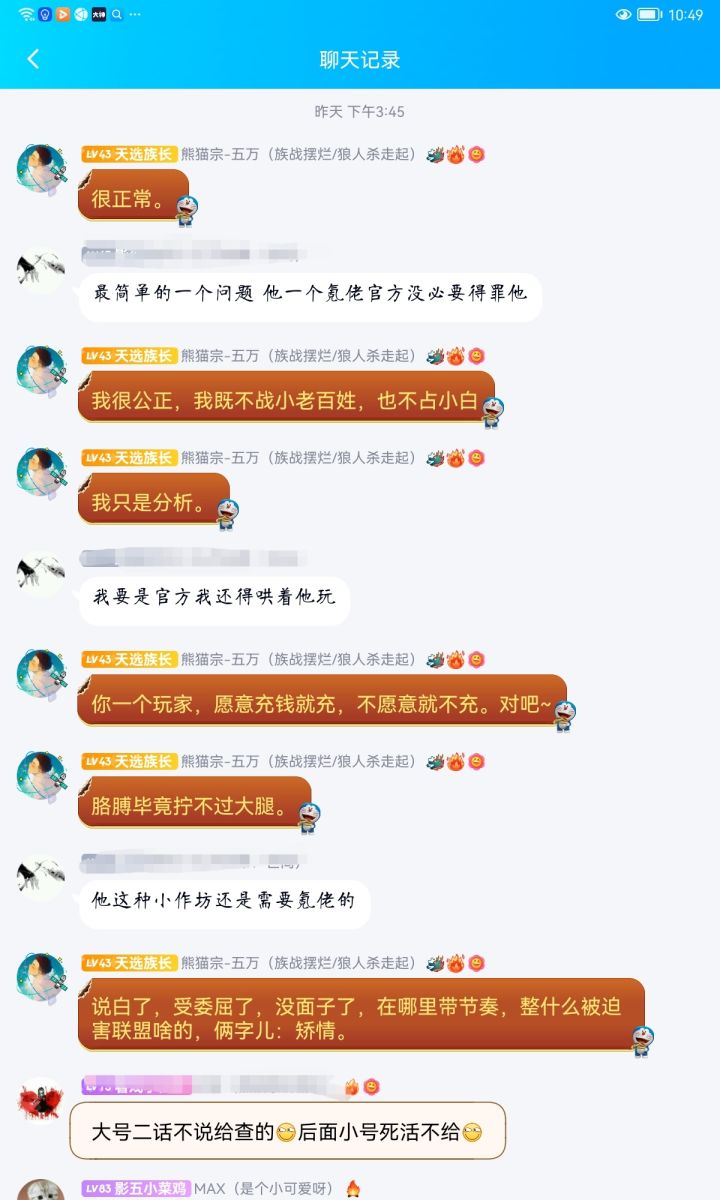 事先声明那个小黑只是来让我们家族带逆ss+的平时也不打深渊家族战。这是当时我们族长跟他的聊天记录,至始至终都是很有礼貌的。我们已经明确说明再说阿闵同志吃瓜过了。你非要带入角色,族长给你道歉了,你还要怎么样。聊天记录都不敢发全?