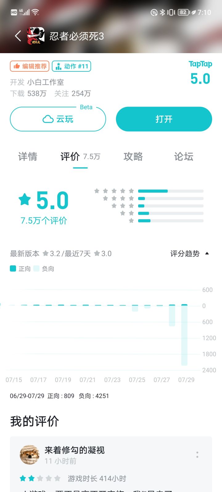 哟,狗白请的狗还满多啊,近7天评分昨天还是2.7,现在3.0了,兄弟们,开开小号辛苦辛苦,争取突破5.0大关,然后在改成1星,他们之前怎么恶心我们,我们现在怎么恶心他们,还有,有钱请水军,没钱给我们发补偿,你发个道歉公告,再多给点补偿,这件事不就过了吗,在这里装死,以为熬一熬就可以把事情熬过去了吗,真有你的