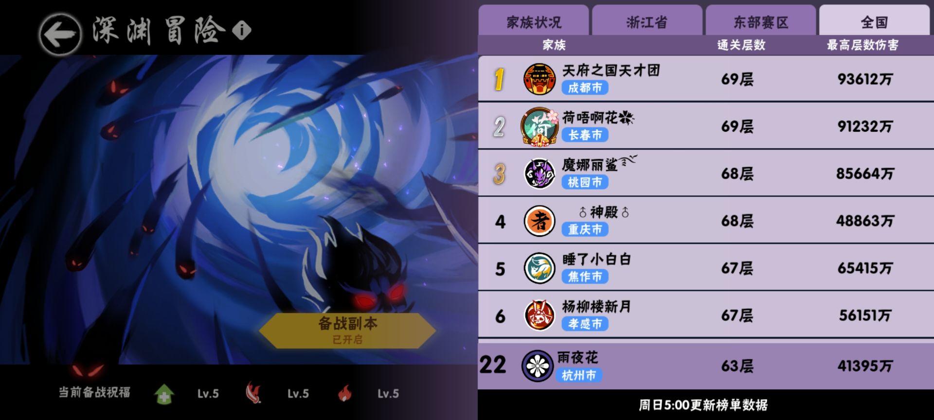 深渊稳定52➕,族战赛区30,无深渊/族战强制,每周抽周常竞技场,高配免费打天元,忍阶不限,活跃即可,10级家族,气氛轻松活跃,欢迎活跃忍忍来玩审核群:777809827 欢迎小团体,团本危险噩梦无双佬加入同乐!(๑•ㅂ•)و✧ 审核群:777809827