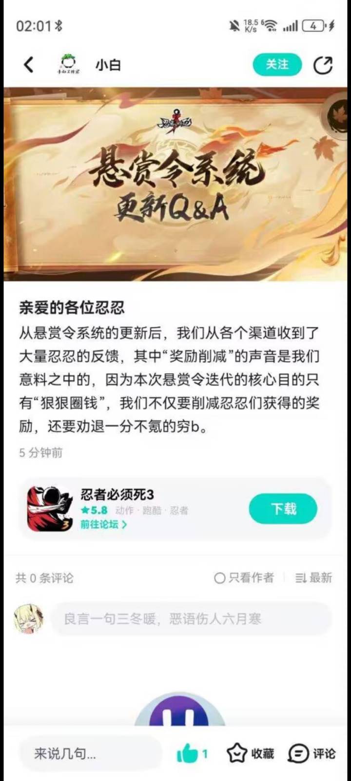 1. 忍三这次改版,减负=减产,优化=逼氪,策划真有你的。2. 奖励砍麻、体验拉胯,越更越烂,彻底寒心。3. 打着减负旗号暗削产出,不充钱连日常都跟不上。4. 剧情敷衍、奖励缩水、操作反人类,这就是你们的新版本