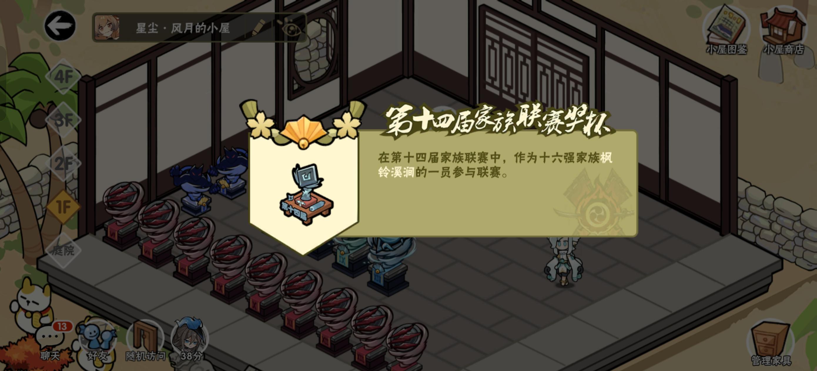一区族战家族枫铃溪涧,家族目前主攻深渊,本届联赛十六强常驻七级战场。现联赛后族战放松一段时间,群内有团本和33大佬有不会的地方可以请教。 深渊族战二选一 家族常驻七级战场,欢迎危险大爪子,噩梦,无双练习生,团本练习生加入 深渊55层左右,会排表与通知,要求主流忍者有一定命格能开三大且听指挥可。 配置需主流有一个433 高配可以包无双,周长,天元前千等 周四随机抽幸运儿吃kfc q群接