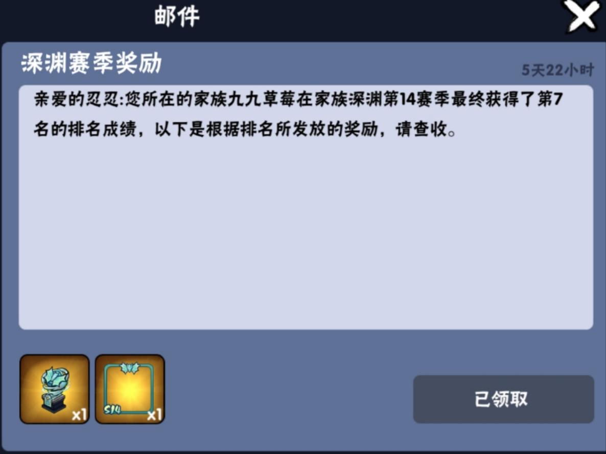 一服雨夜花招人,联赛家族,深渊上周全国排名20名,(因本周深渊不计分放假,故排名不计数)本周深渊64层,冲66!!要求:深渊尽量拉满,有事可请假,深渊听指挥福利一:定期抽取故事章节满星(如满可换周常),包括各种竞技场及周末活动。福利二:每月会有不定期忍三周边,红包,神龙(具体视深渊情况抽取,每个月都会抽)福利三:家族高配会稳定带每位小伙伴所有忍三活动(传颂,逆袭),帮打所有六星ss+,且大