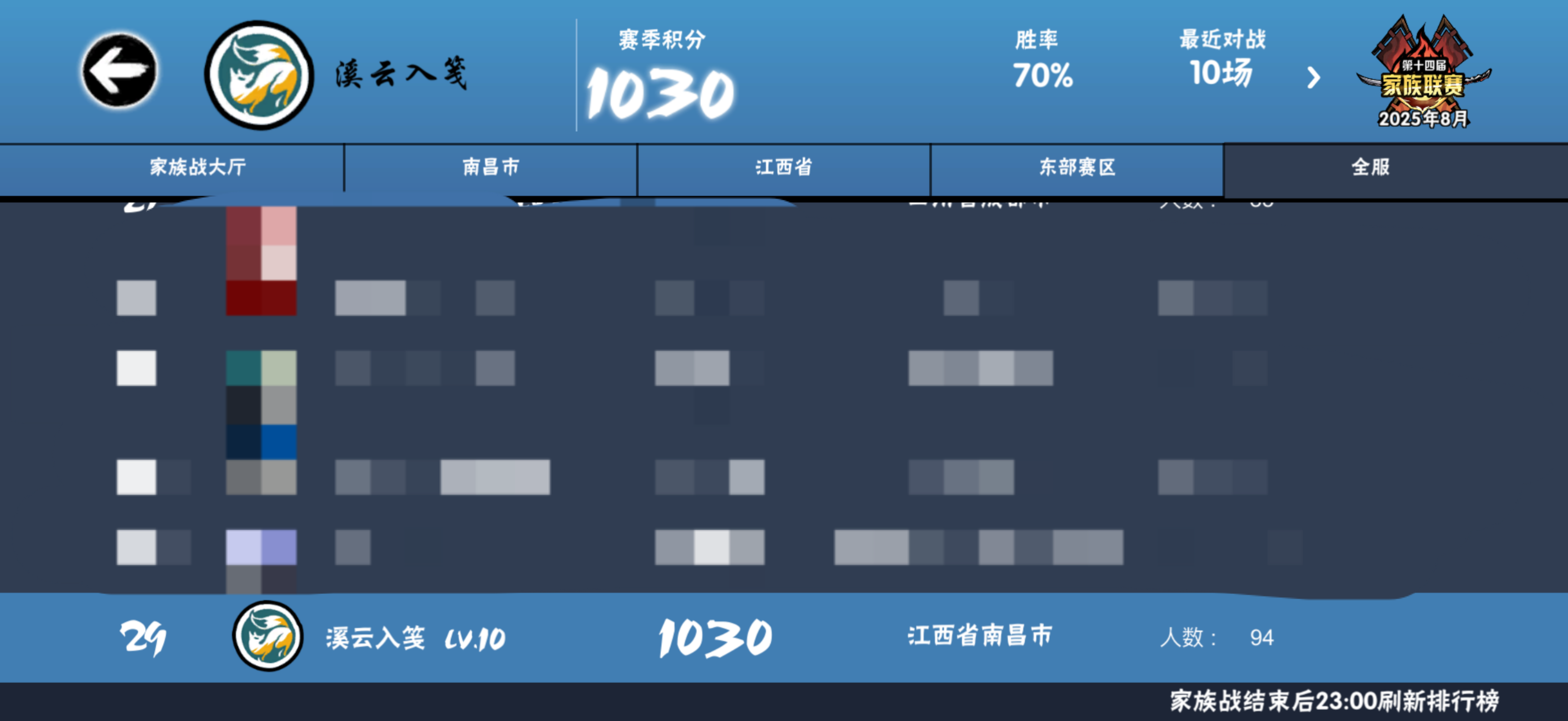 一区家族溪云入笺,编号6358,招管理、招喜欢并且能参与深渊或族战这样团队玩法的宝宝。家族氛围和谐,需要帮忙打什么群里说一声就好~有人陪你玩,有人陪你唠嗑~深渊能打完66层。还有点33之魂。会丢丢团本。家里有这些:1.深渊前30稳定煲粥。2.族战拉满10份周常。还有大群随时发车,优先没打的,常来水群基本都能打到。3.带活动头像、雪熊框。4.带忍阶首领、银头。招管理、可内并,可细嗦。