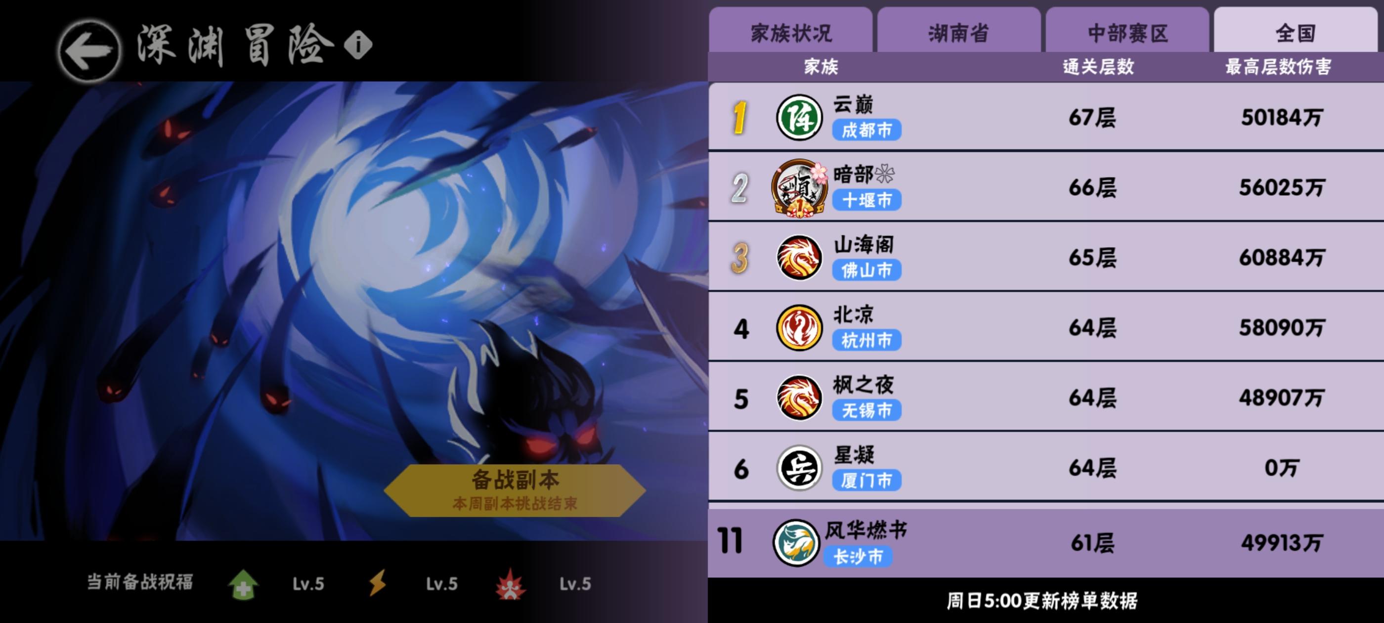 三区深渊家族:风华燃书招人,本周深渊层数63,族战全国排名前十,中部第三,全国联赛十六强。 揽新要求:需深渊活跃,主角色432紫卫隼鹤新椒4900+攻击,带二命以上副角色且深渊拉满3300w+即可进入,群文件有33全难度教学,提供33玩法思路,可带一切ss+及以下。 Q群V群皆有,主Q群群内活跃,家族氛围和谐,有张有弛,还有大佬每日献唱活跃气氛。非常欢迎愿意长期建设的忍忍们加入,一起来为家族添