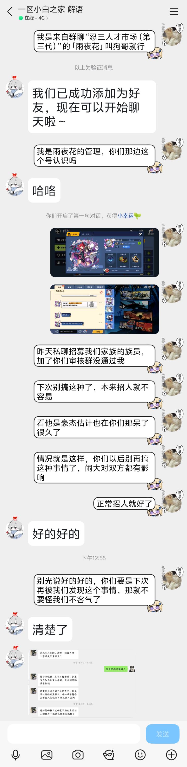 双修家族暮雨晴生新赛季招人! 联赛七届32强 深渊一届百强六届50强 (深渊稳58~60层)(主七级战场) 家族主QQ,管理到位日常轻松,氛围良好且变态,欢迎志同道合的新老朋友,常驻优先哟 福利(包括但不限于): 每周深渊抽取六星周常。 每周族战抽取小零食。 其他不定期掉落:1、勾玉CDK/2、现金红包/3、剧情抽奖4、竞技场上山/5、活动带框/6、零食抽奖:7、家族私人定制周边奖