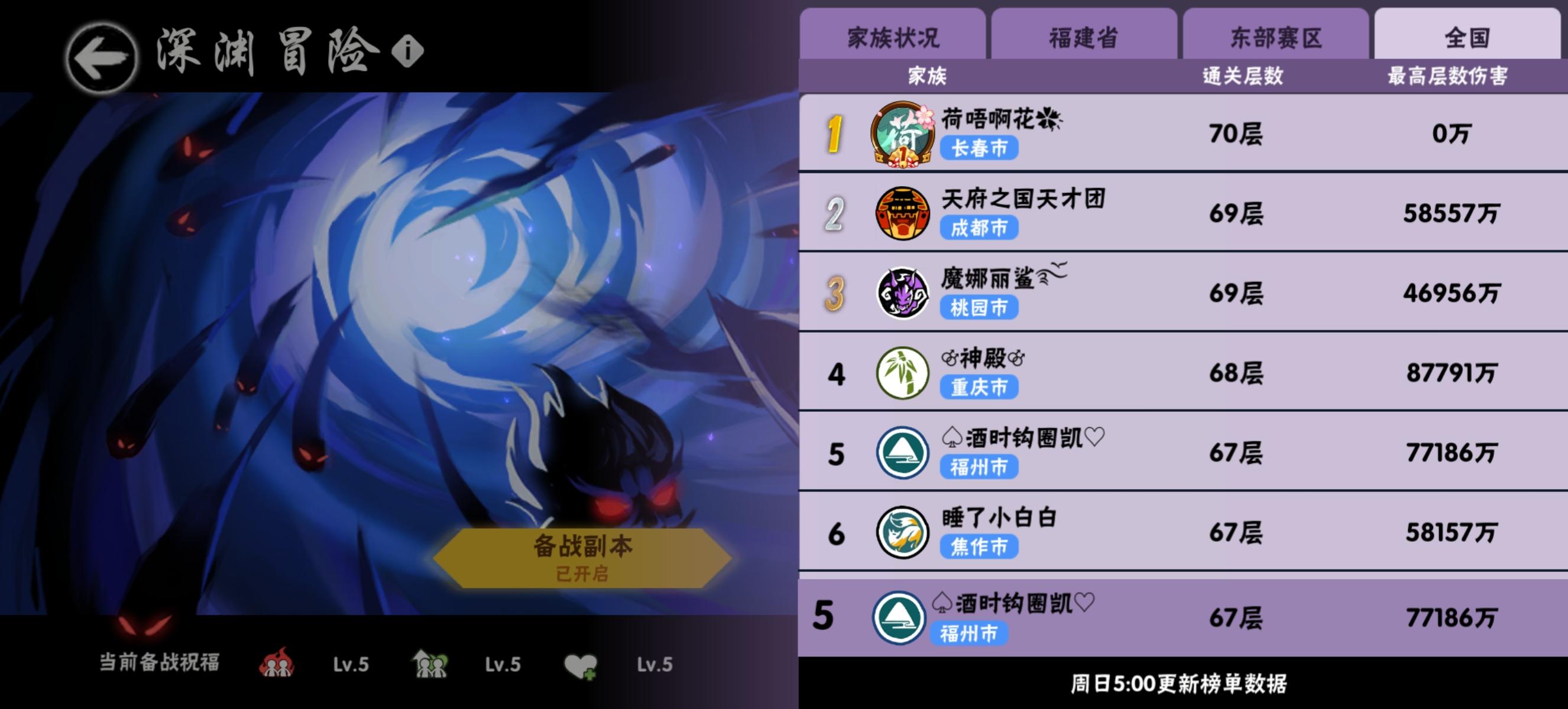 深渊S15赛季啦,一区910JQK招人~双修家族,上届联赛八强,深渊总榜国八团本要求:西瓜315 蝙蝠395 河豚195 金币3080神木130 礼袋75 烟花78 森林2390八选六福利详谈,可提供团本账号练习深渊S15W5国五金头,已过67三个新箱子纯深渊选手要求如下:1. 态度端正,稳定听指挥拉满,来不了要请机甲师,周五前打完备战2.有62+高层深渊经验,排名靠前最好3.紫卫