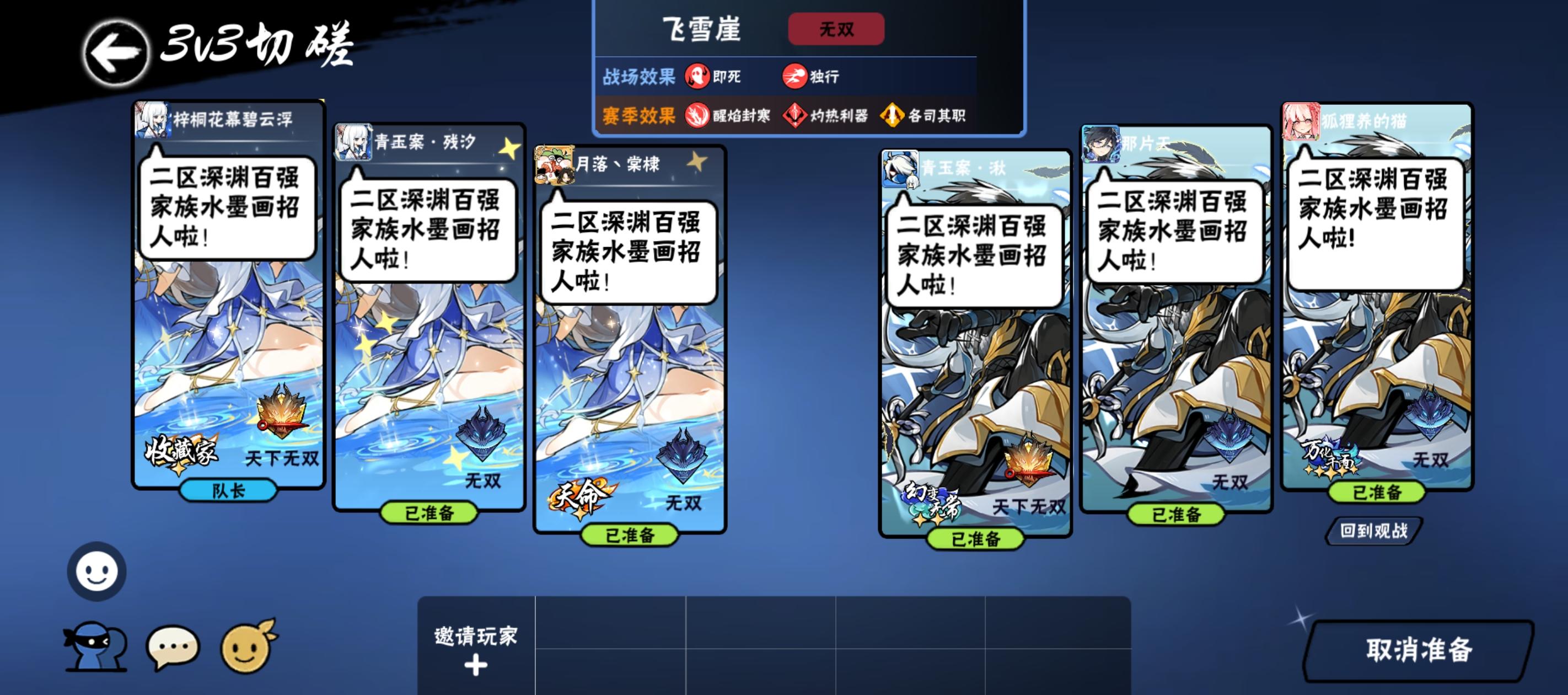 二区深渊百强家族水墨画招人啦!家族福利多多,包括周长,剧情,竞技场,33上分,深渊非放假56-59,有兴趣的忍忍快来看看吧!要求配置主流角色双433+211以上,深渊三大。需求深渊非特殊情况全勤,注意可能需自备机甲。每周可携带深渊伤害截图上家族莽车,看群且伤害达标即可吃周。贡献达2w以上,当月深渊达到前十2次,其余不出前20可包无双(_ 上无双需求配置较高,希望谅解)。有竞技场需求可以