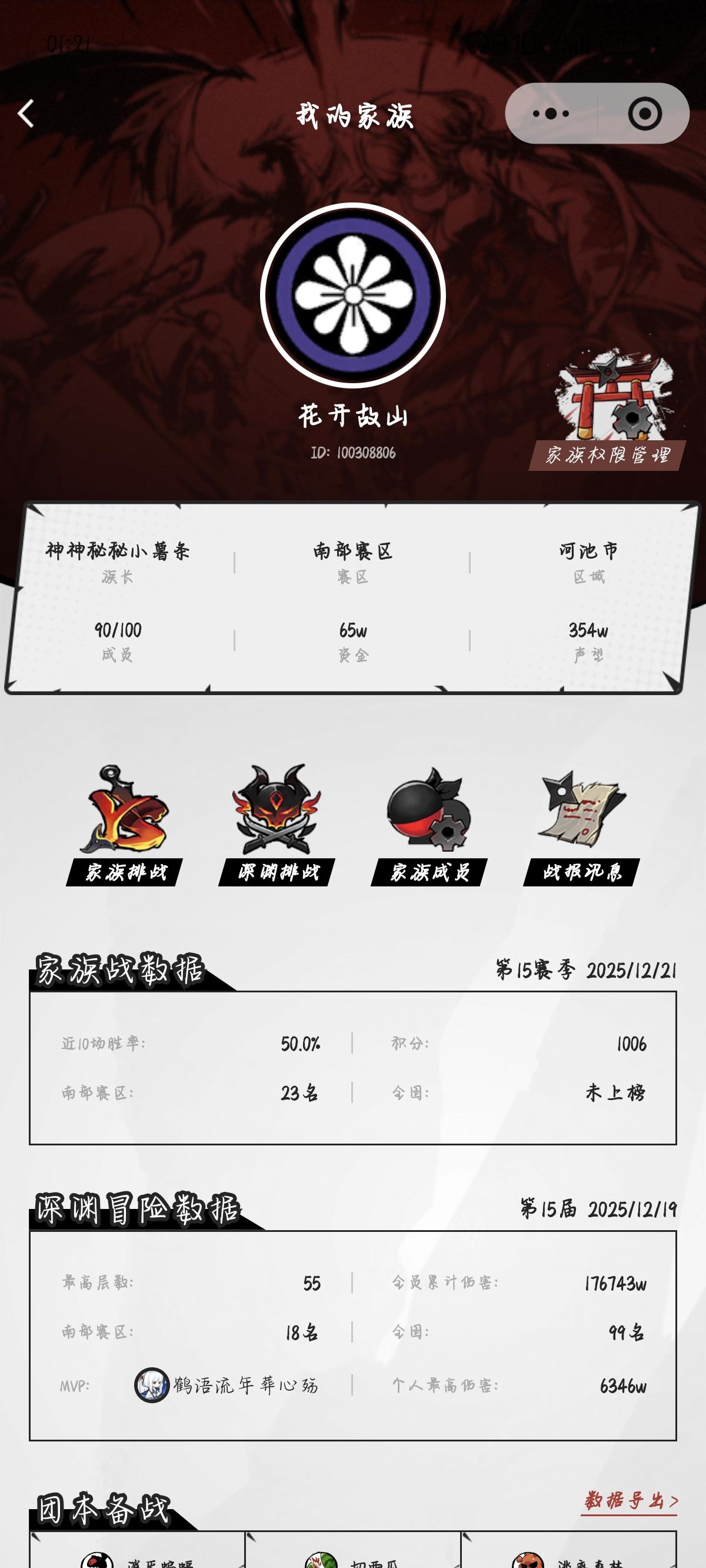 二区联赛季军战队🏆 深渊新赛季火热开启🔥 广纳贤才,共赴荣耀! 【孤鸿杳杳起风雨,广纳人才,虚左以待】✨ —————————————— 【🎯招募要求】 1️⃣深渊全勤 · 常驻型中高配玩家 🥷主流忍者命格需达 6+6+4 标准 2️⃣团本练习生 & 33竞技选手 ⚔️ 🌟招募潜力新人,可适当放宽配置要求 —————————————— 【❤️家族优势】 ✅三年稳健运营,管理成熟,