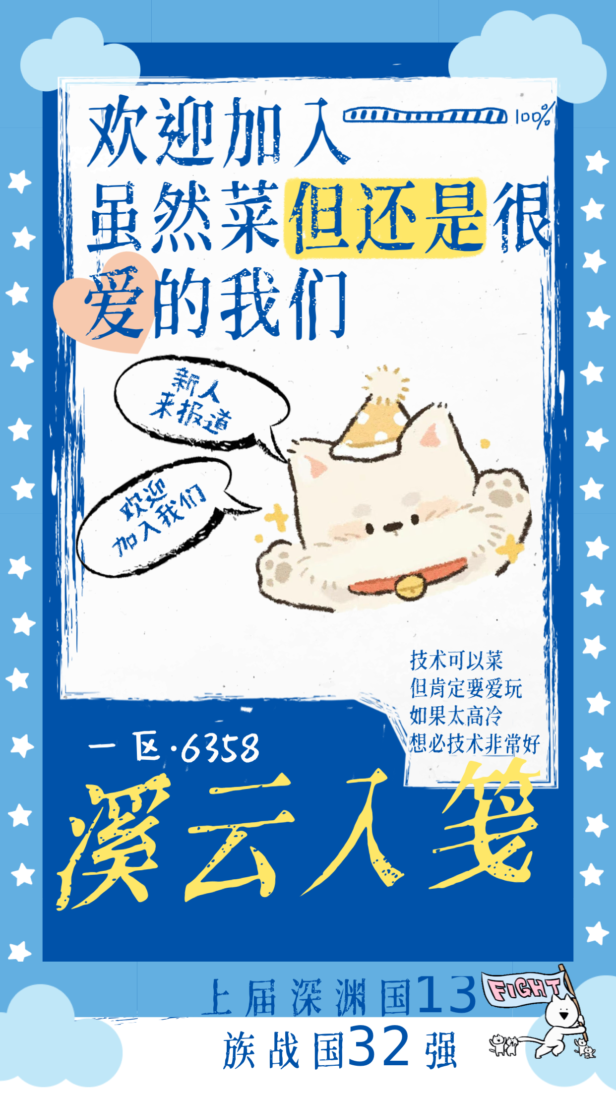 一服雨夜花招人,联赛家族,本周深渊62层,冲65!!要求:深渊尽量拉满,有事可请假,深渊听指挥福利一:定期抽取故事章节满星(如满可换周常),包括各种竞技场及周末活动。福利二:每月会有不定期忍三周边,红包,神龙(具体视深渊情况抽取,每个月都会抽)福利三:家族高配会稳定带每位小伙伴所有忍三活动(传颂,逆袭),帮打所有六星ss+,且大部分ss+都可32。审核群号:571881041