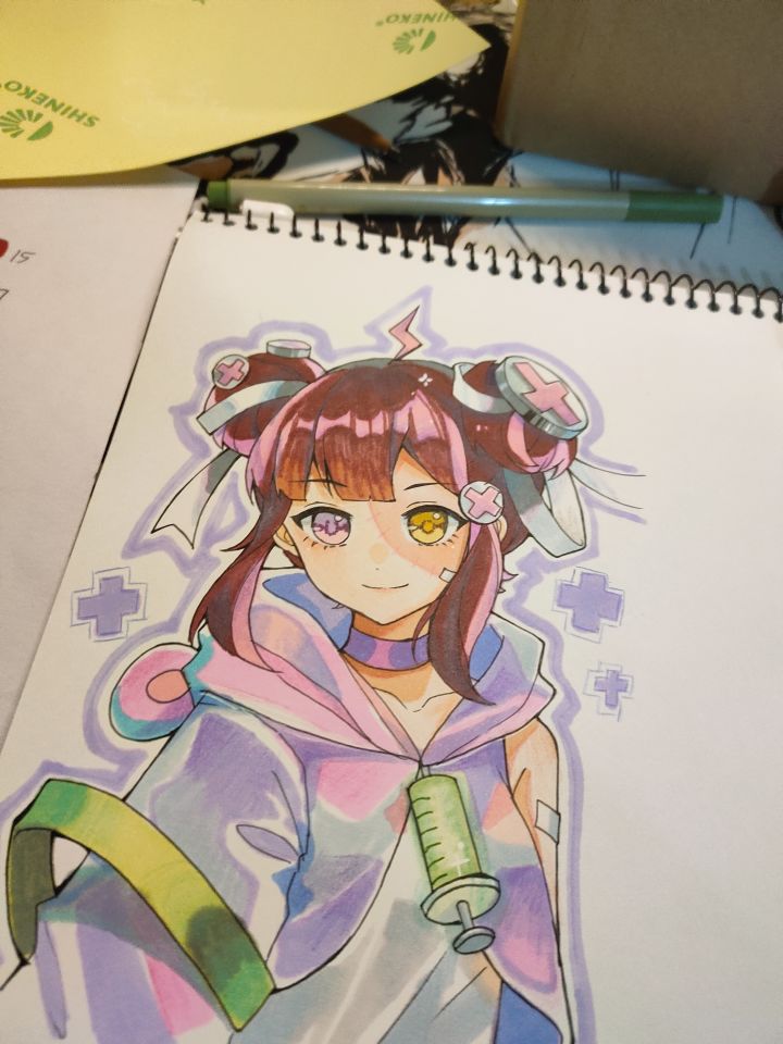 回学校没带板子,想着手绘给椒椒画生贺结果没找到铅笔,就想着那随便画点什么玩填色游戏好了,当久了卑鄙的电绘人,手绘不能修改 翻转 缩放比例真的太!痛!苦!了!留在学校的笔还没有想要的颜色,于是就这样了(இωஇ )回炉重造好了,玩一阵子手绘