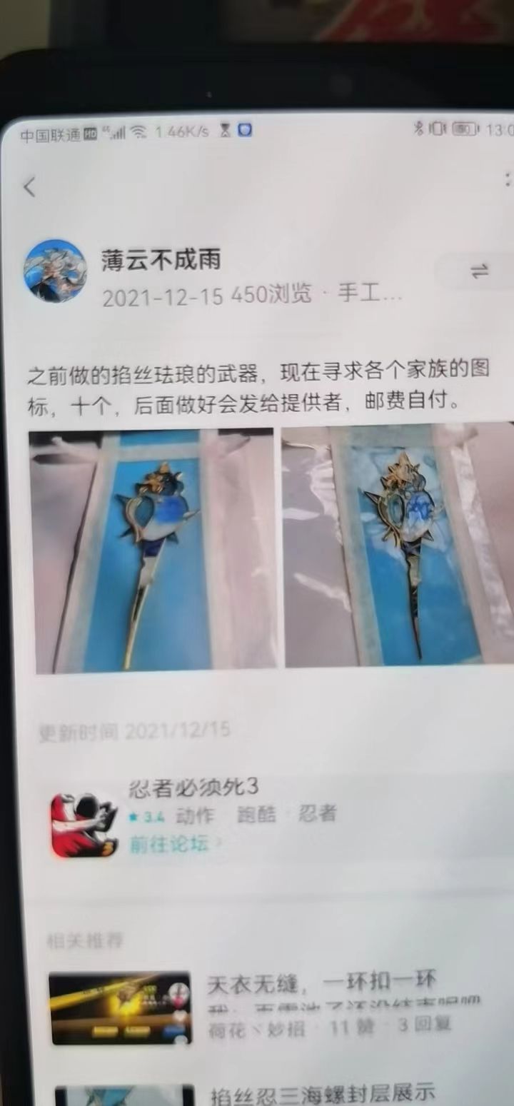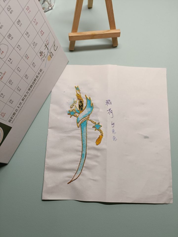 论师父看到了tap上的博主做的掐丝武器,让我也第一次尝试尝试这件事。掐丝真的好细啊,调沙感觉颜色不太对,瑕疵过多,不过纪念一下第一次做手工,真的好有成就感😍😍😍