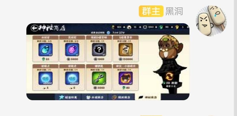 一周五个s,这是什么成分商店四个每日一个60万忍币啊,奶奶的竞技场跑累死了昨天深渊气到删游戏,今早下回来想起来抽皮肤,然后46抽中了,每日的s也是今早,呜哈哈顺便家族招人,编号155668,家族带五星躺(早也没想到会一周s五个s,所以就保存了一张s加的,其他都是在聊天记录里截图的,迷迷糊糊的背景可以看见是不一样的,反正都是这周的芜湖)