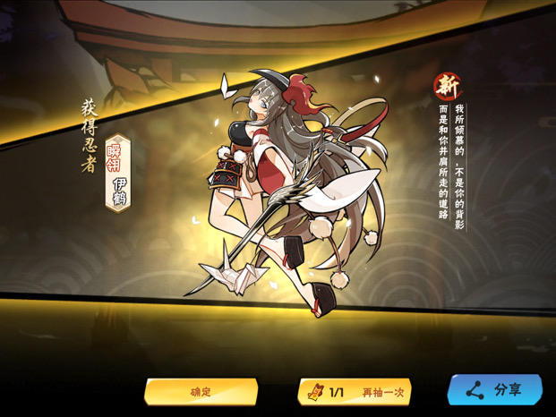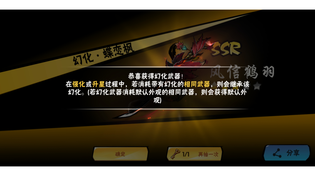 早上起来上大号的时候本家打算签个到就溜溜球的,领了签到奖励两把金钥匙抽咒印的时候顺便抽了武器,当时池子里垫了二十来发,抽着玩来着,没想到第二发单抽就出了,给我一下子整不困了,玩大号的欲望又有了(最近一直玩小号,大号配置太烂了一直在摆,小号都快追上大号了)😂😂😂