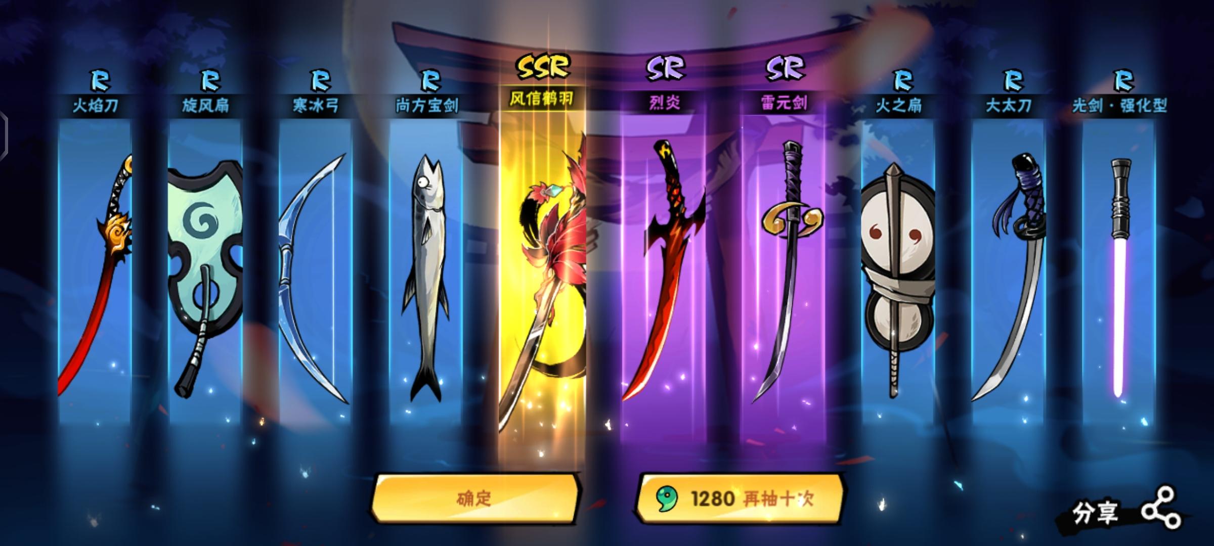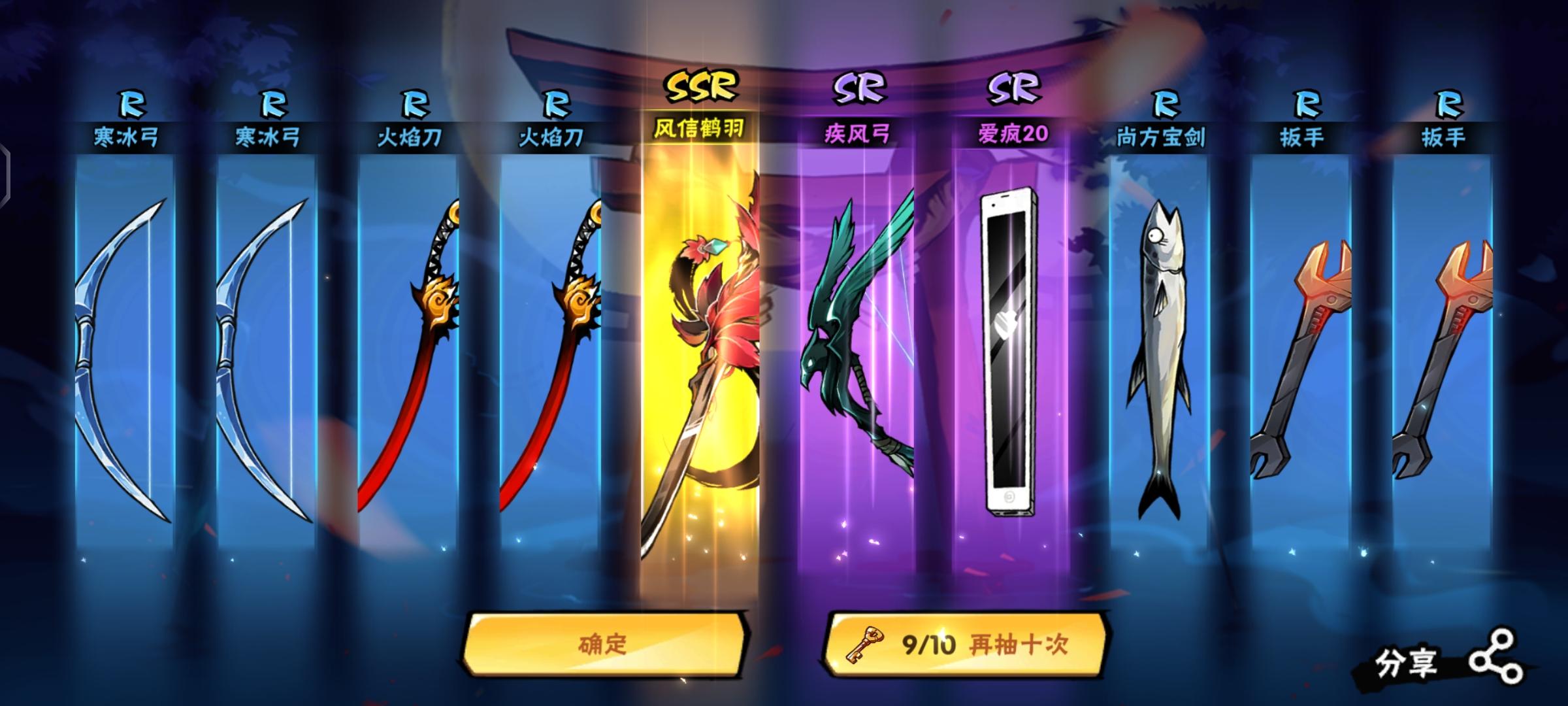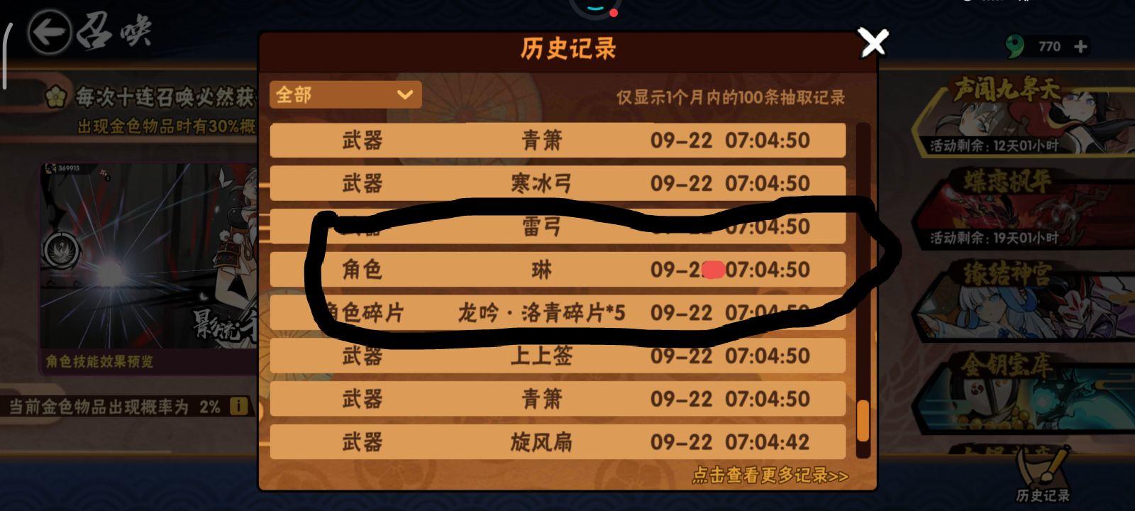 9.28 180抽6金(无幻化)织炎,苍月战刃,雷弓,海螺,神炎杖,织炎一度怀疑真的有up吗9.29-9.30 单抽了四下(四个r)10.1 凌晨随手来了发十连,只有10抽的底,直接双黄,必是的风刀加木重华,真香!国庆节快乐!!!10.4 不保底出的原皮风刀共计205抽9金10.5 神炎杖加蝶恋枫,完美结束共计253抽11金
