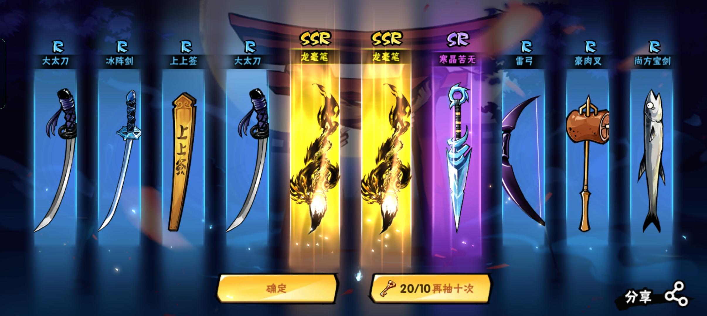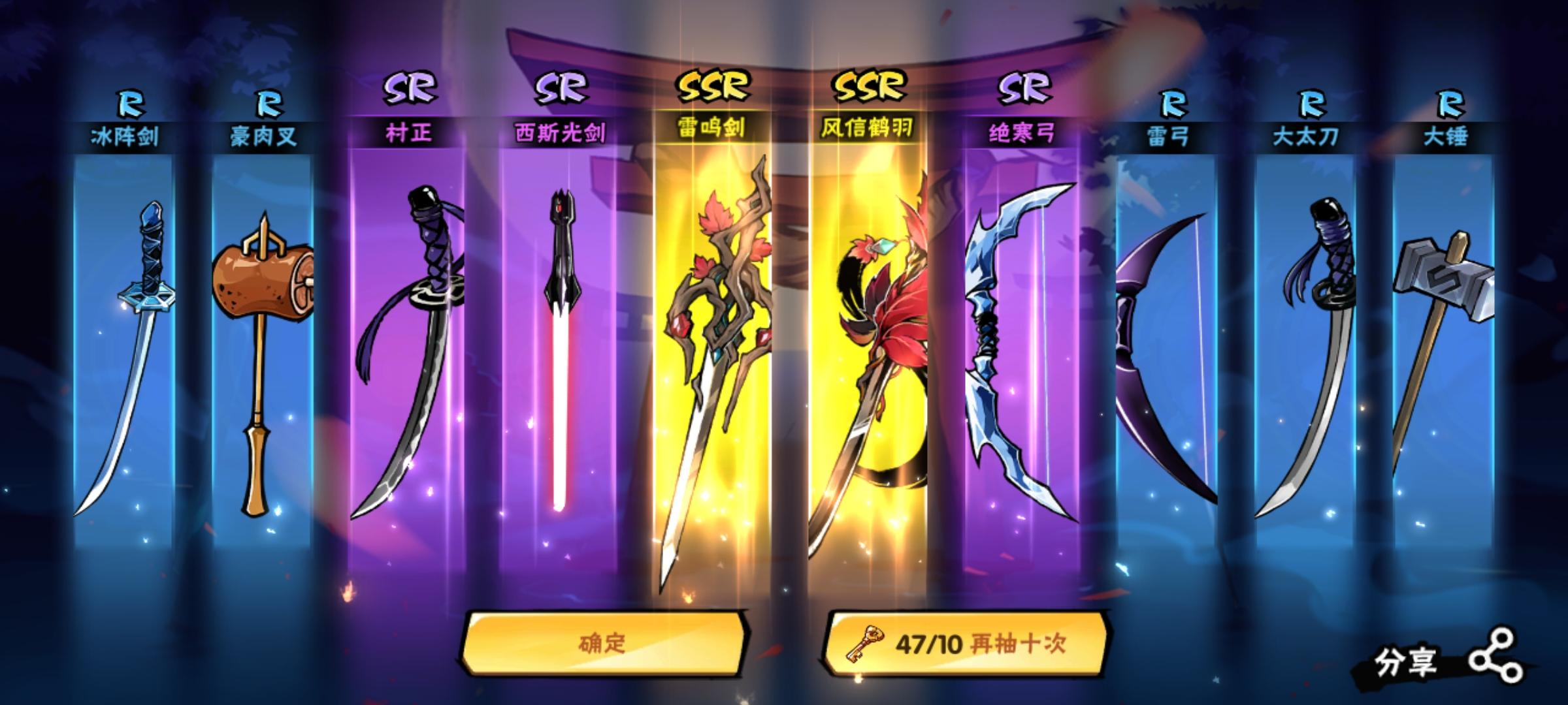 图1是之前攒的,后面陆陆续续又氪了不少,加起来300抽,8个金,一把百雷一把风刀两个有用的,然后恼羞成怒换了一把幻化风刀,不是很能接受好吧,我朋友看完图还以为我定的雷剑,说真的这游戏有点恶心了