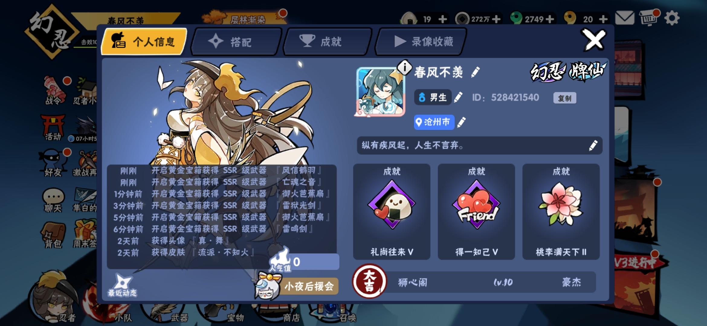 感觉大家都在晒,我也晒一晒!可惜了 我没法玩儿双风,现在给我这个琴真是没有想到,还是你厉害啊 狗白不过很感谢你给我出幻化!