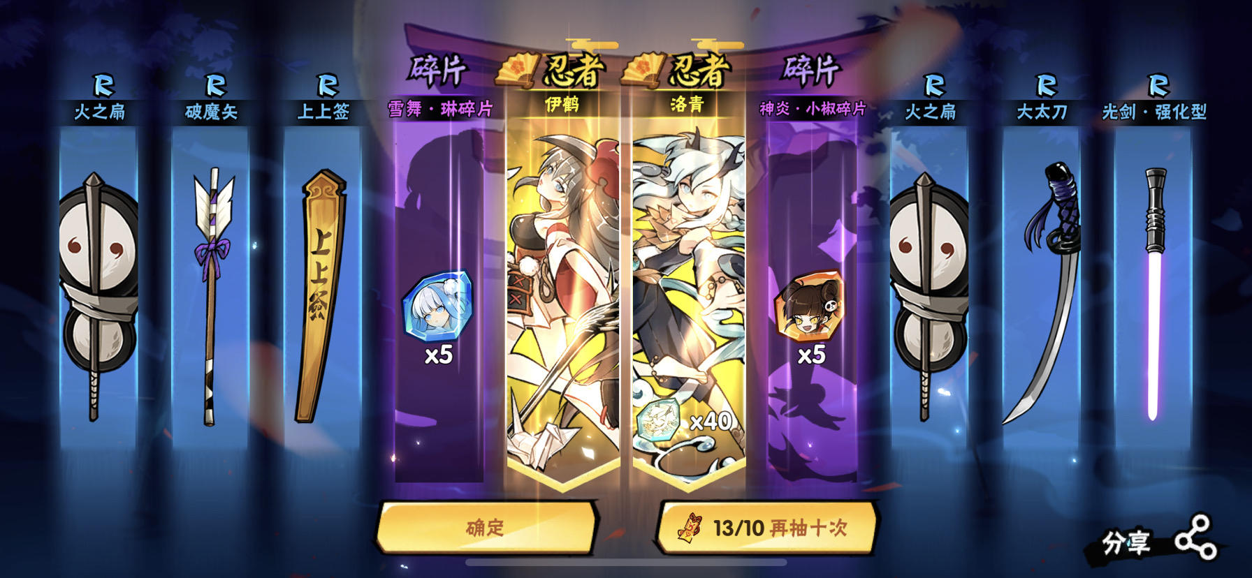 三十抽俩伊鹤,今天不骂狗白了在用的角色终于都抽满了,开摆!ps:这次一分没氪全是攒的符,真滴欧,以前氪都是巨黑