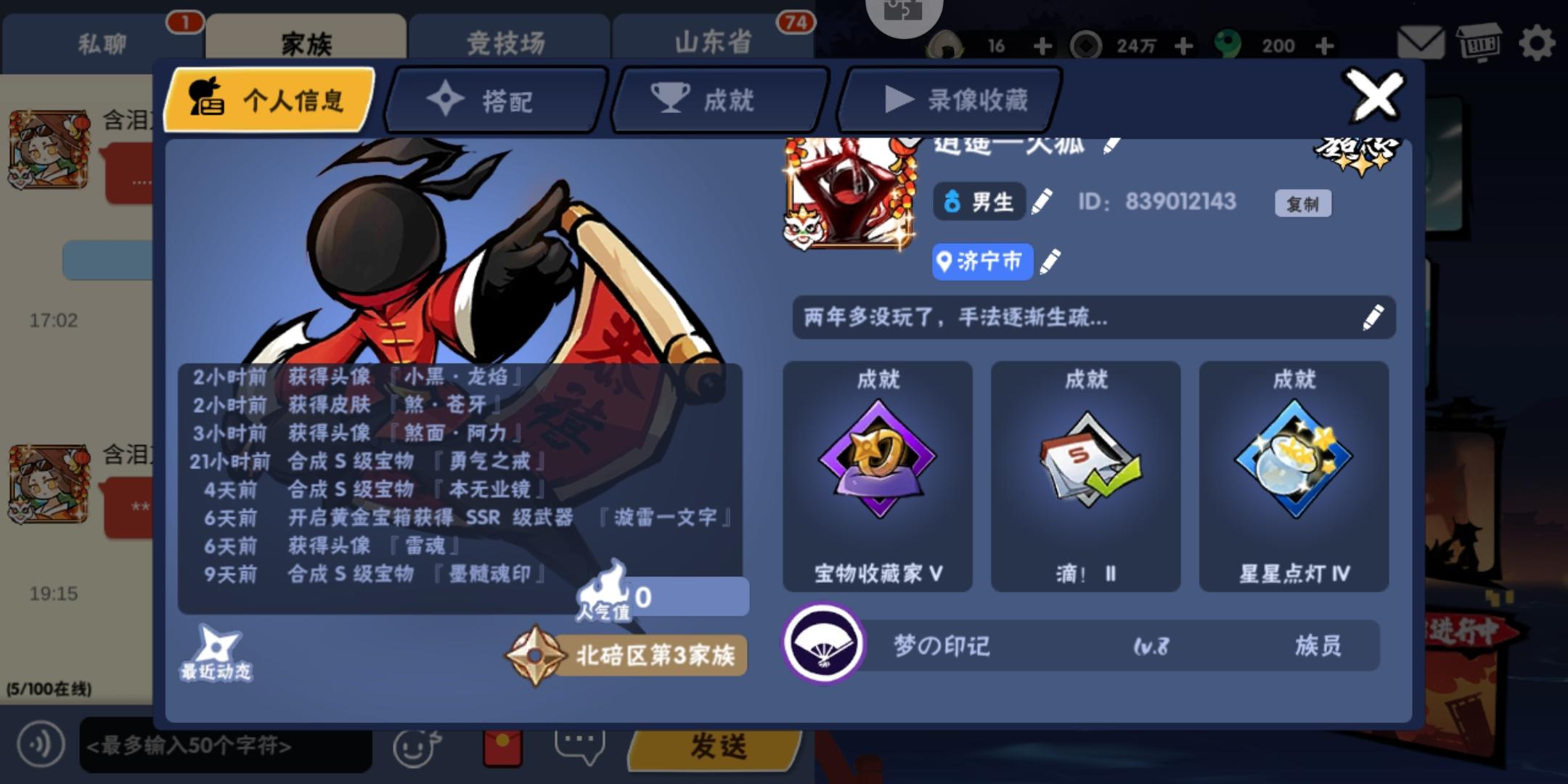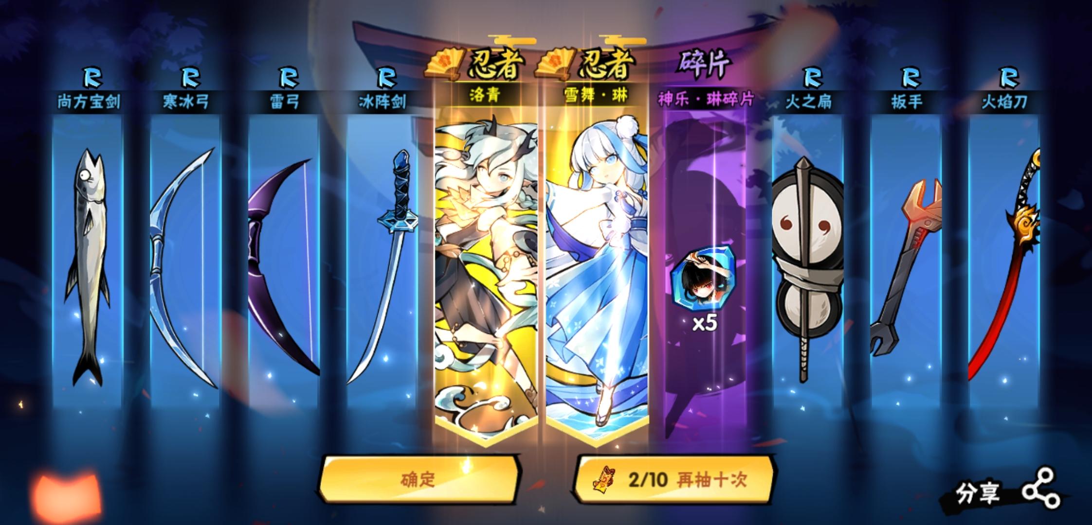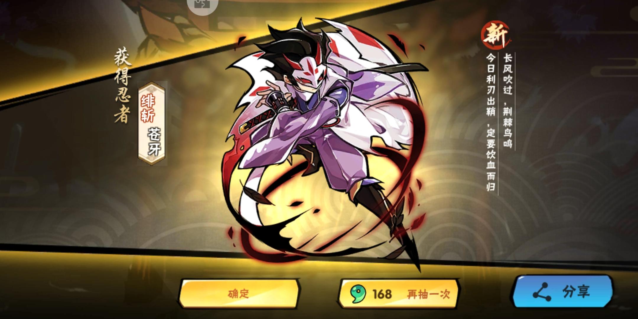 今天才回坑,错过40张符,尾巴都没赶上,不过白嫖的10张符出了雪舞和新忍者,感觉我又行了😋不过好在理智地思考了下,我还是嫖个风信就溜了吧。悬赏爬塔3v3家族战,真的把这个游戏拾起来,马上就会肝财两空的说……(≖͞_≖̥)