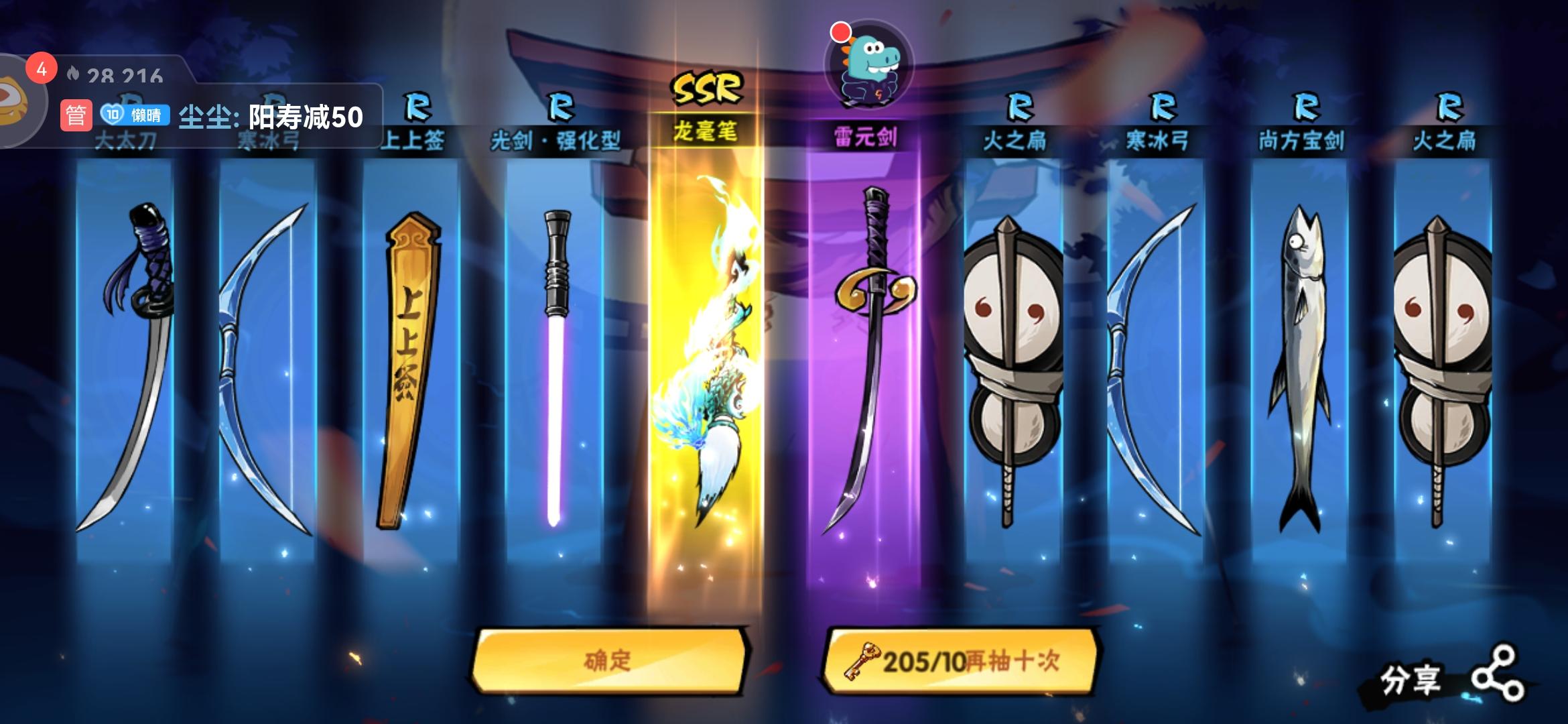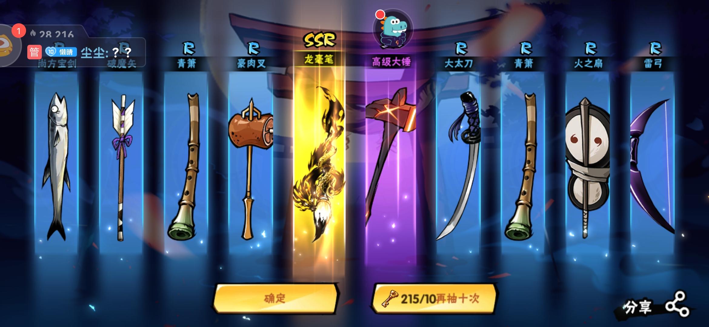 不辱使命,今天230共8金6龙毫3幻化加上断潮风刀,基本需要的都抽到了,感谢朋友信任,感恩挚友!!!算是今年周年庆的欧吧,上次欧还是上次风刀季,希望看到帖子的忍三小伙伴们也欧气满满!!!