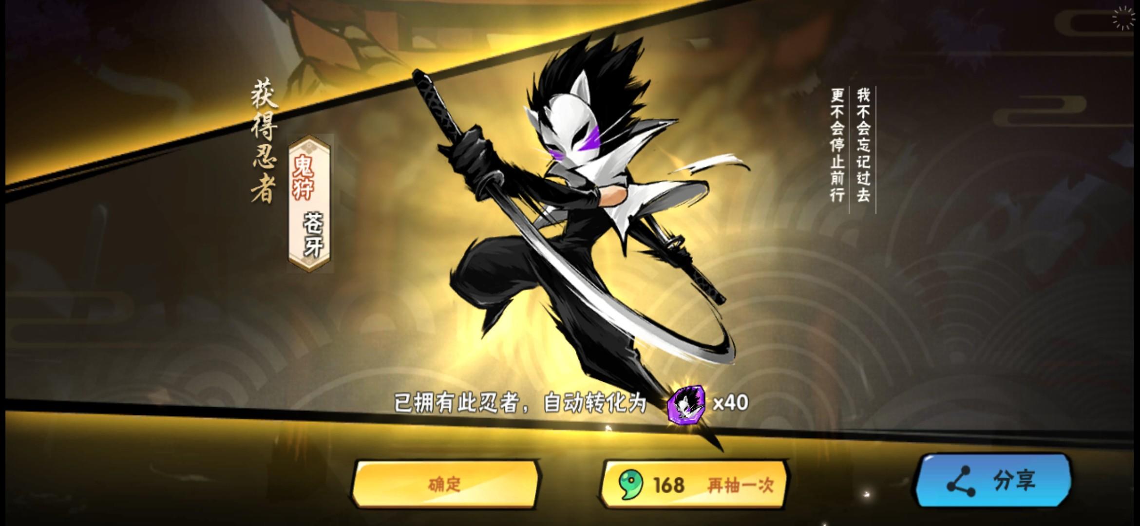 呵呵,我一发就出了金,很快啊,啪的一下(我不会忘记过去,更不会停止前行)哈哈哈,苍牙来咯