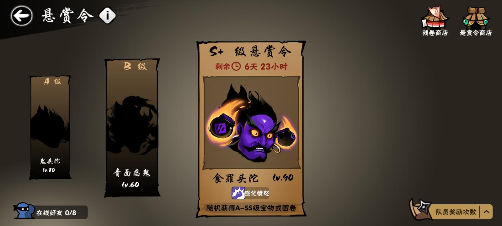 每天一个悬赏令居然领到了S+的