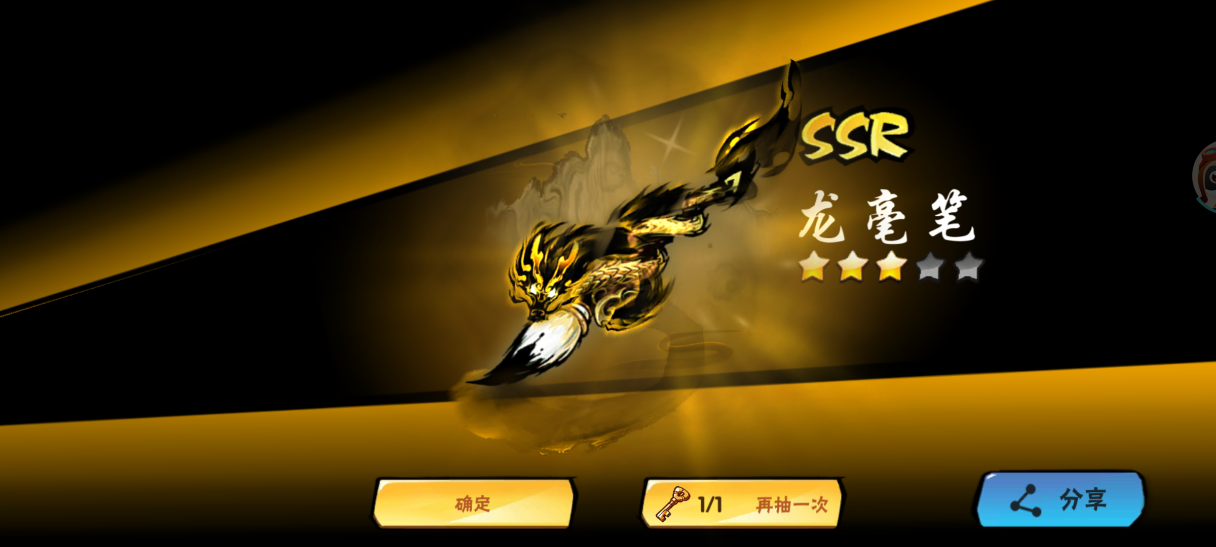 下午日常随意一抽,出金了,好……好个屁,又歪了,一个月出一个金是吧老实说我都算不清有多少抽没出了,只记得隔了好久……只能说这个一文字给雷剑升星还不错?
