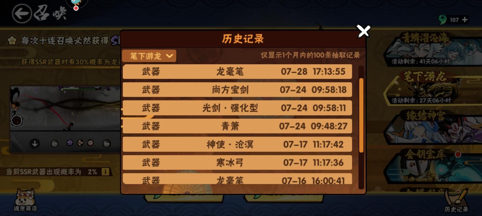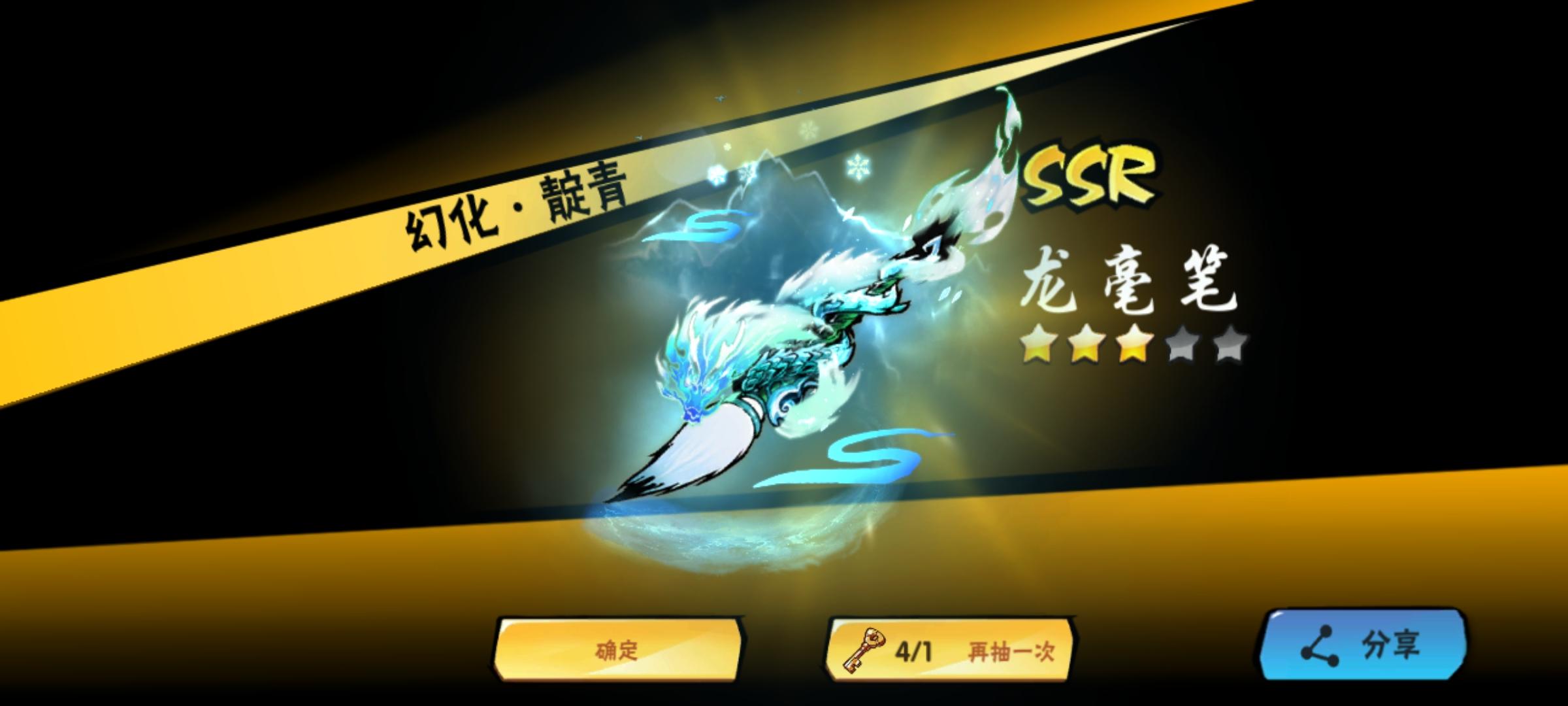 因为之前玩的一加服务器,现在不用那个手机了,就新创建了一个号,刚开始玩,送了五个金钥匙,想着抽什么武器,在哔哩哔哩搜了一下,觉得龙毫笔还不错,就去试试池子,结果一发就出了😂。纯萌新,不骗人