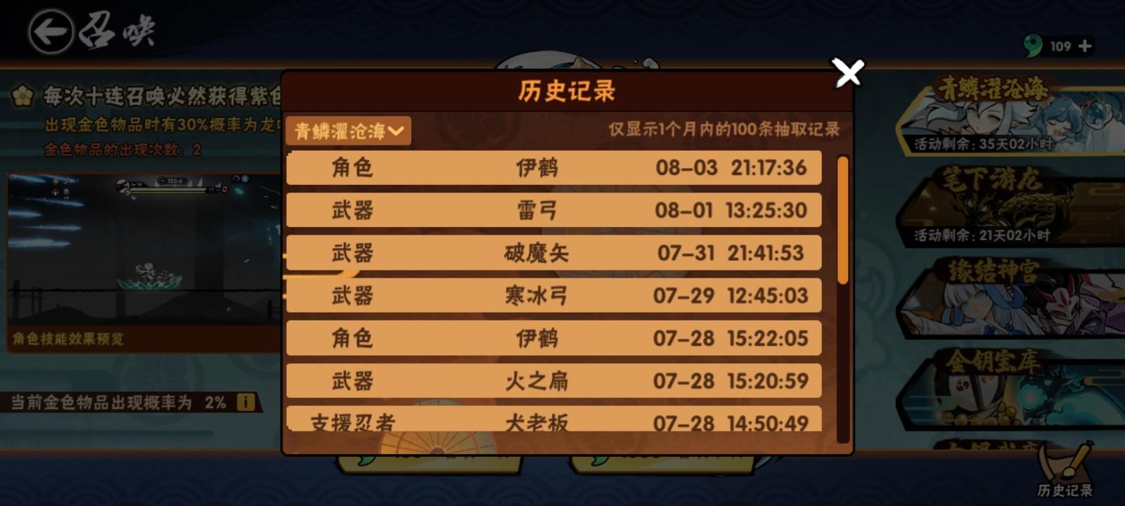 新手玩了第十天,送的十连抽抽到洛青,单抽三连抽到伊鹤,今天又送个十连抽,抽了两金两紫!总共都没抽到三十抽😂