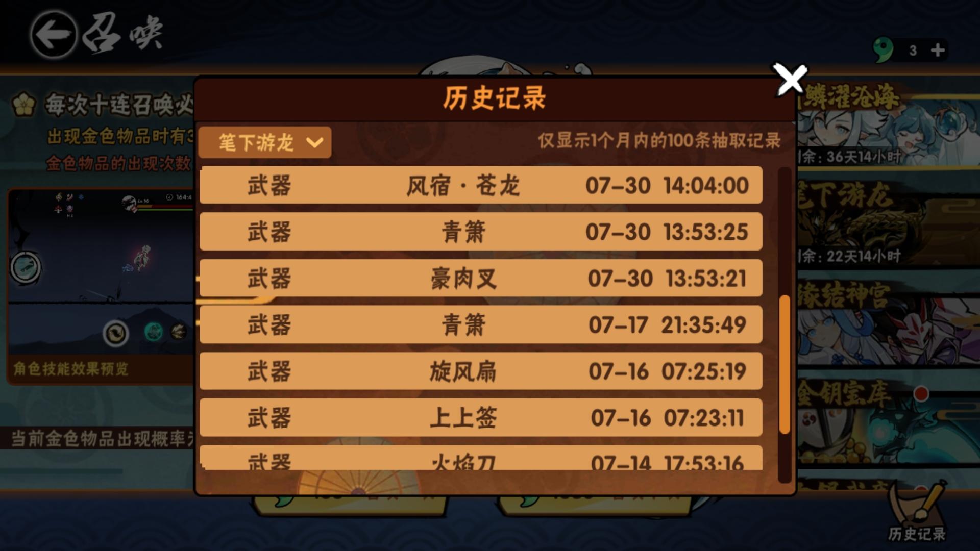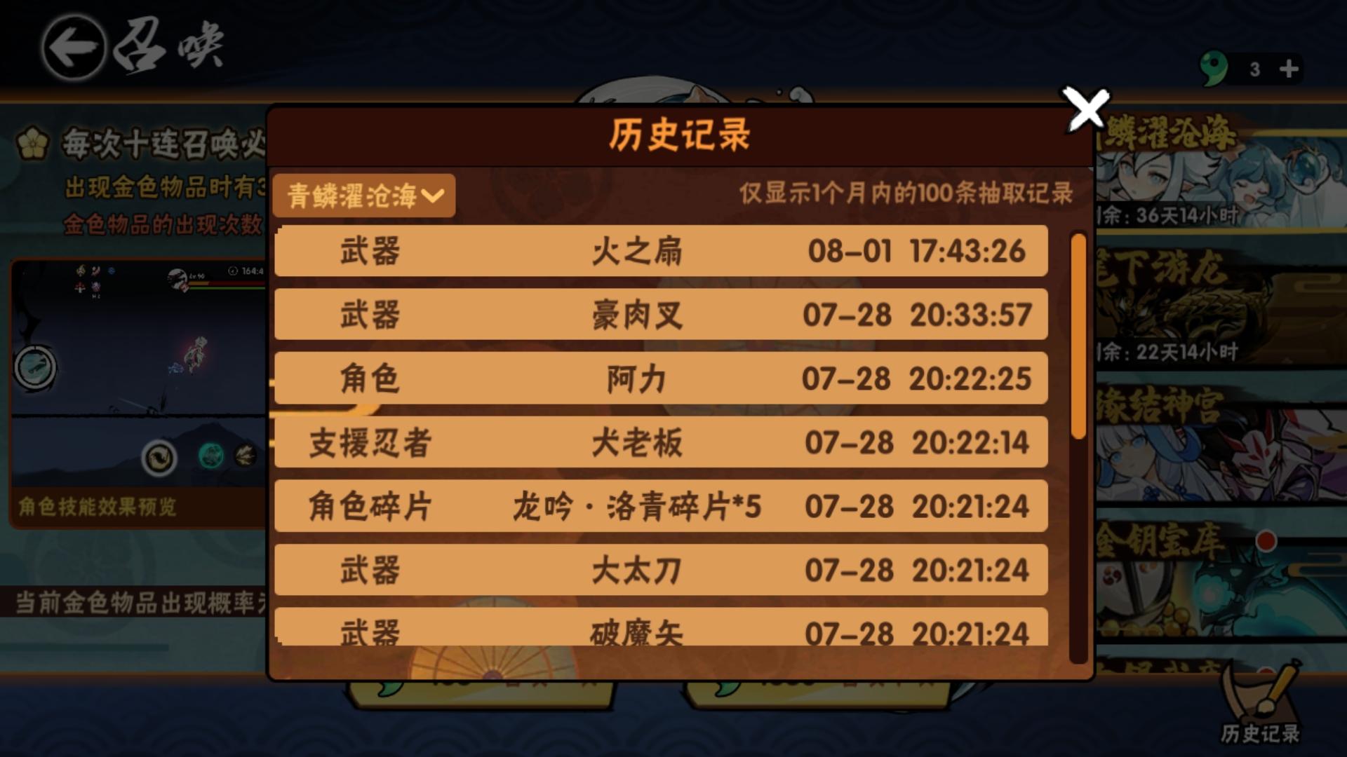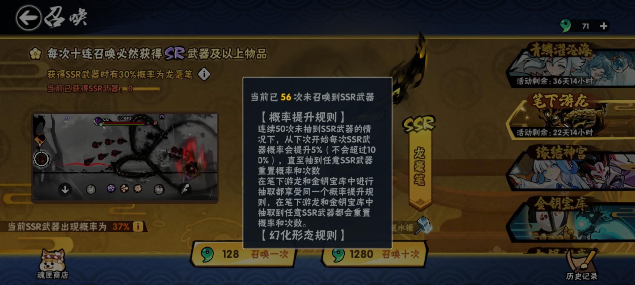 论600抽不出30%UP武器/角色概率的大小,闲来无事在忍者营地点了一个小时,还没有低于两把龙豪笔的,换成角色我相信都是一样的概率,都是30%嘛。谁没事再去抽下,再UP池600抽没抽到UP武器务必踹我来看。