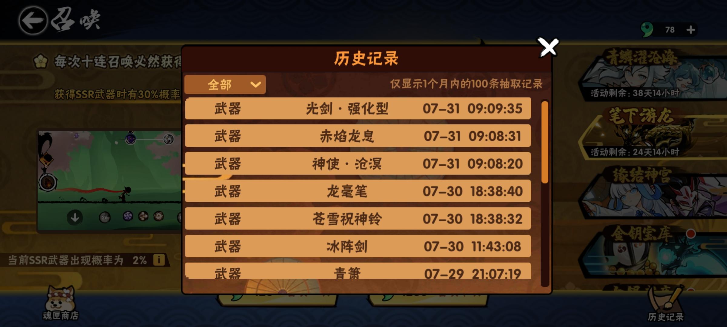 最近出了两个SS悬赏和SS+,似乎运气比我退游前好上很多?另外2个保底(60+55)出的2金居然都是洛青………(别冲,真的养不动洛青,不会养)还有武器池第四金毛笔幻化(啊这,这我是没想到的)近期成就达成:神行2、云集3、猎魂0、极忍5星、NAC32强、有一位亲密度2000+好友~安静记录,摆烂,不卷不肝……