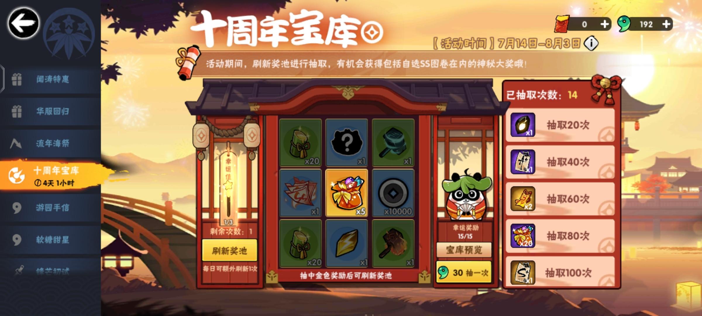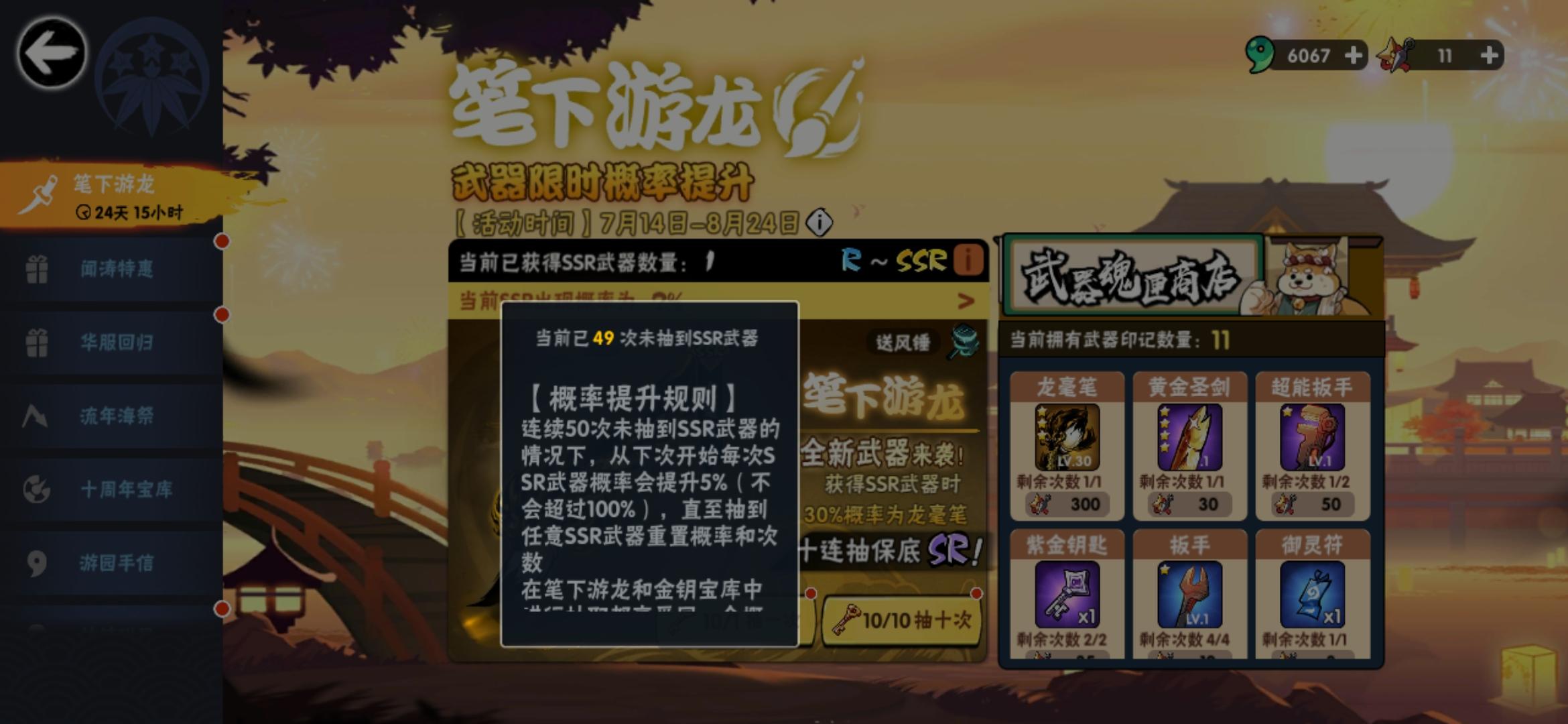 洛青和这个池子我无力吐槽,因为我的200个符去抽了火舞,不出意料,保底第五金出的,还有我的240钥匙,七金无百雷(好早之前的池子),好难受啊小白