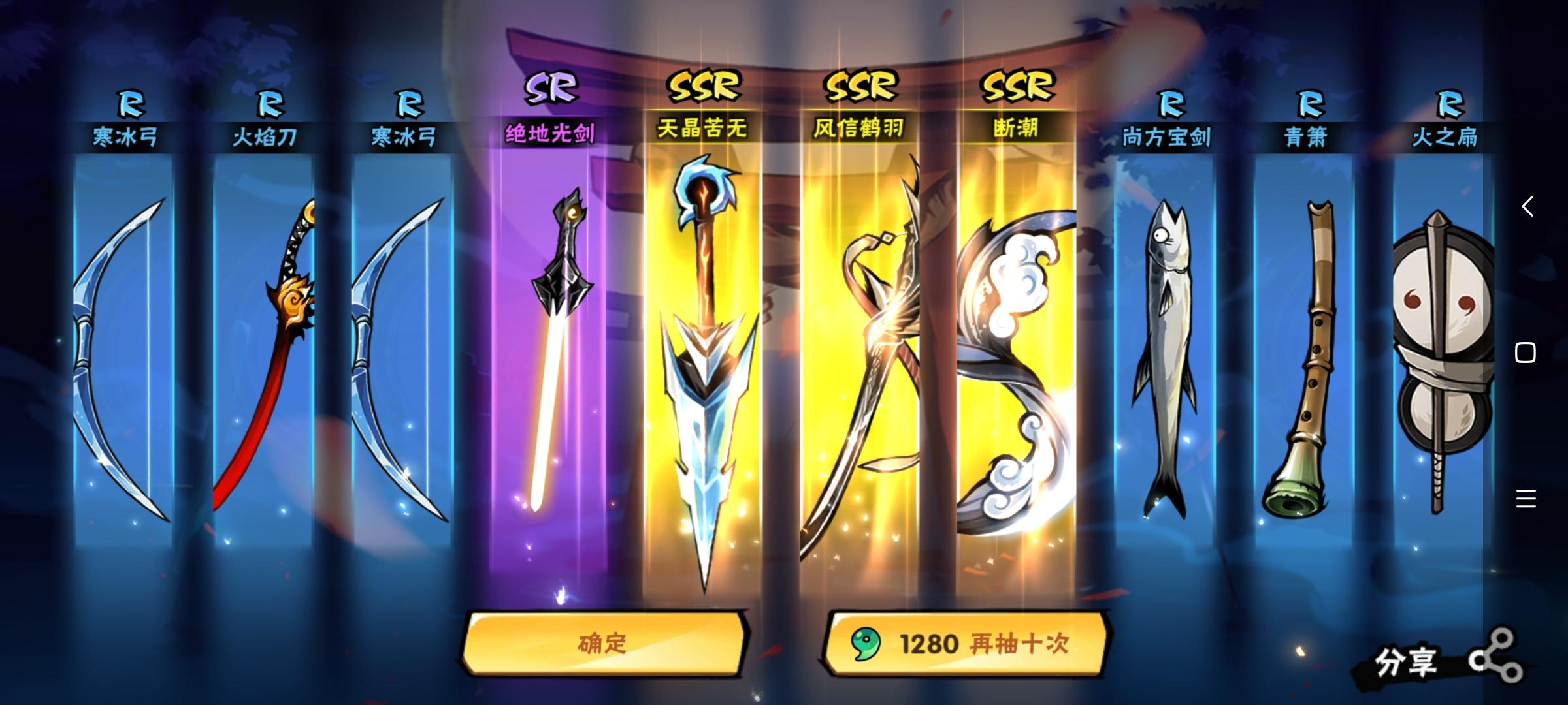 考个古,19把ssr没活动武器,百分之0.1多一点的概率。。。。。。