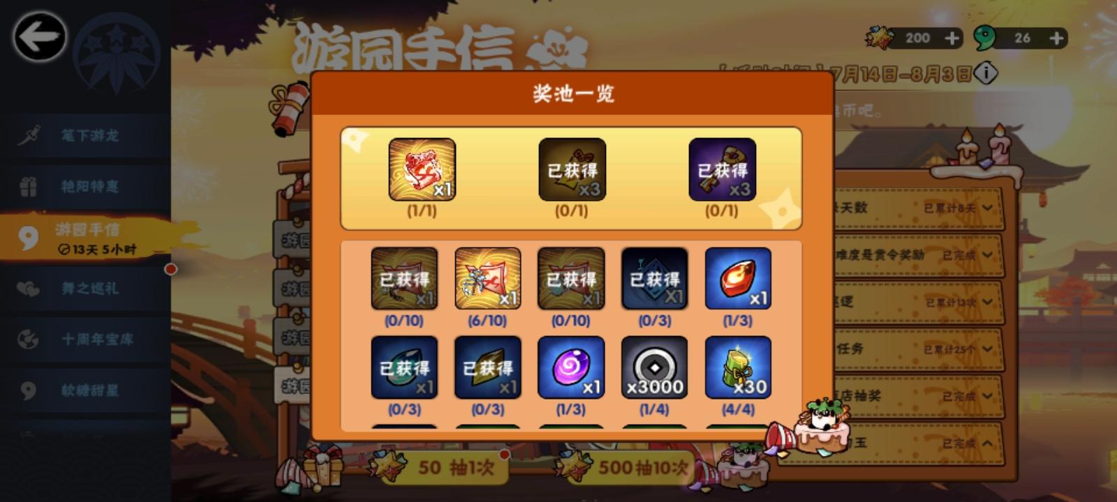 我新号一发十连两个金,一个龙豪笔一个风信,然后二十抽来了个雷鸣,然后九抽来了个苍月,角色送的三十抽来了一个雪舞和一个火舞,现在小白对新人福利这么大吗!
