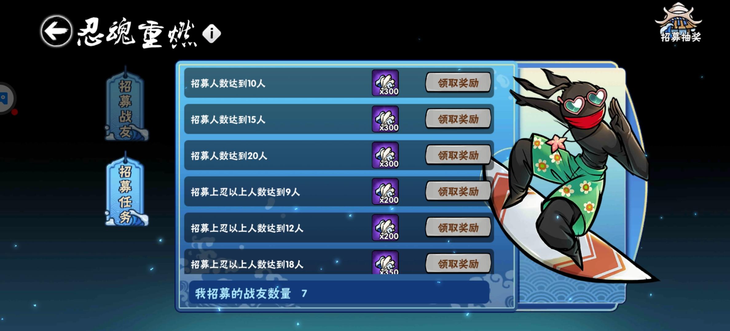 点击忍魂重燃,输入忍魂码:20321e45,领取金钥匙,结神符,免费带任意ss+及首领😘😘😘