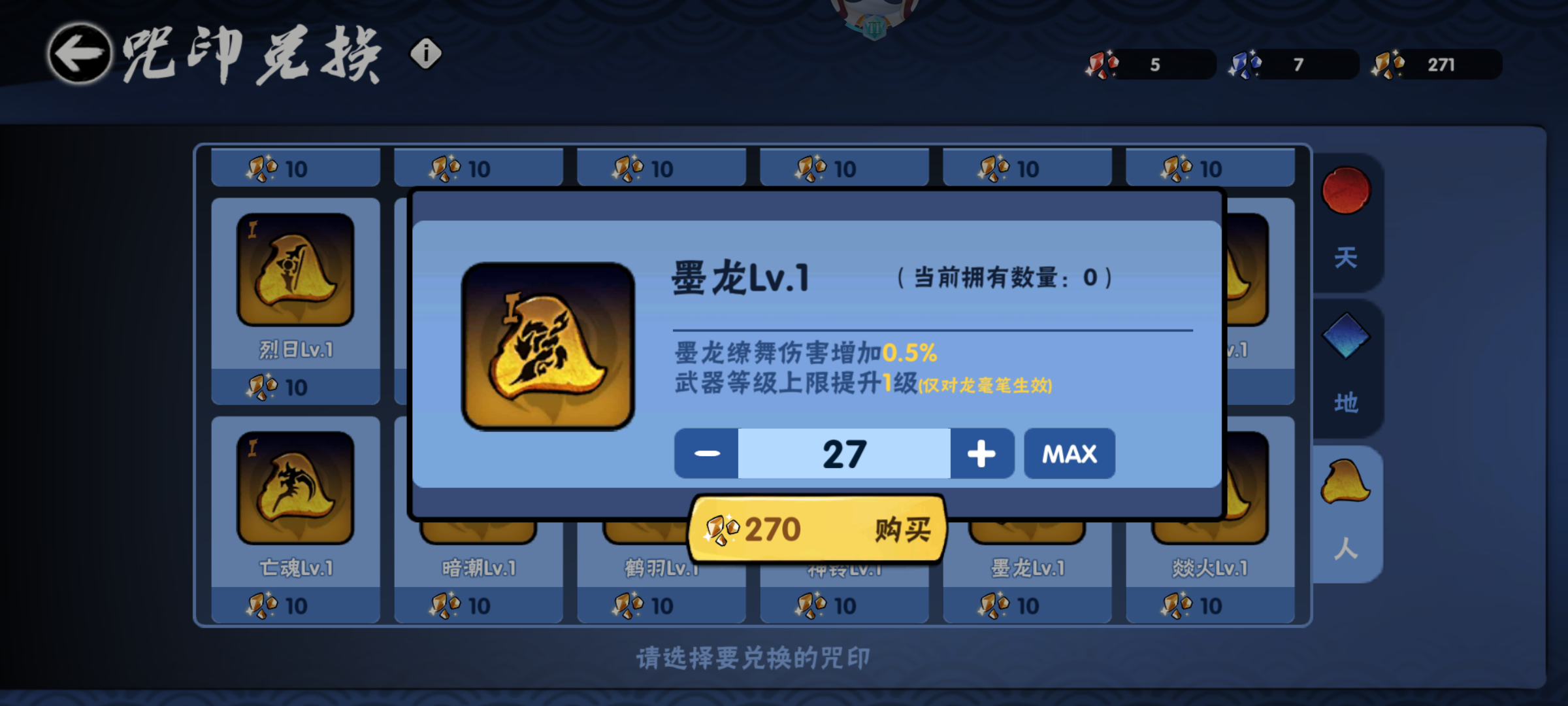 今日份欧气以及98把SR水武和270张人咒印直接让我的墨笔失去了童年,最后迎来了我第三个六级咒印。越晒越欧。。。