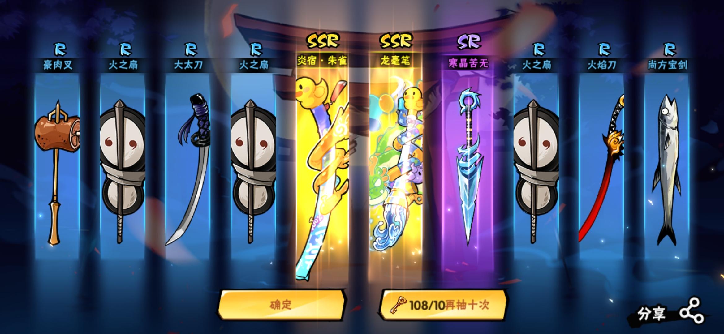 总结一下今年过年抽奖成果,金钥匙一共抽了309发,一共12把武器,结神符一共210发,出了6个忍者。 金钥匙:六把新风武,一把普通毛笔,一把幻化毛笔,两把百雷,一把喷火器,一把雷切。视频没录全。去年武器没出多少,今年很欧气,歪的百雷圆了我的百级武器梦。 结神符:两个绯斩,一个伊鹤,一个银枭,一个炎龙,一个机甲阿力。今早抽到幻化毛笔,感觉洛青在呼唤我,想在银枭池子里歪出洛青临时上头抽的,其实本打算不抽银枭的,想着几发就能出洛青,结果停不下来了,没录视频。。。去年二百五六十多发出了12个忍者,6-7个星闪,半年达成六命,今年在忍者方面没有那么欧气。 新风武,加上换的,一共七把,等下次幻化池子了,莽一把百级。 这次攒资源攒的老久了,差点给我搞退游了,过程可真不舒服,以后可能不会再攒了。 最后祝大家欧气满满,300发造个百级新武。