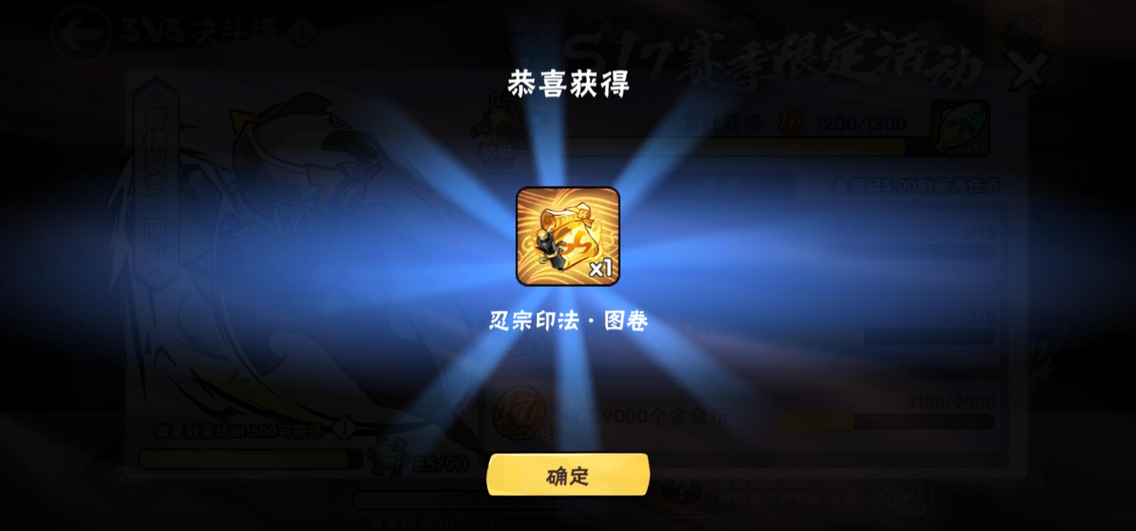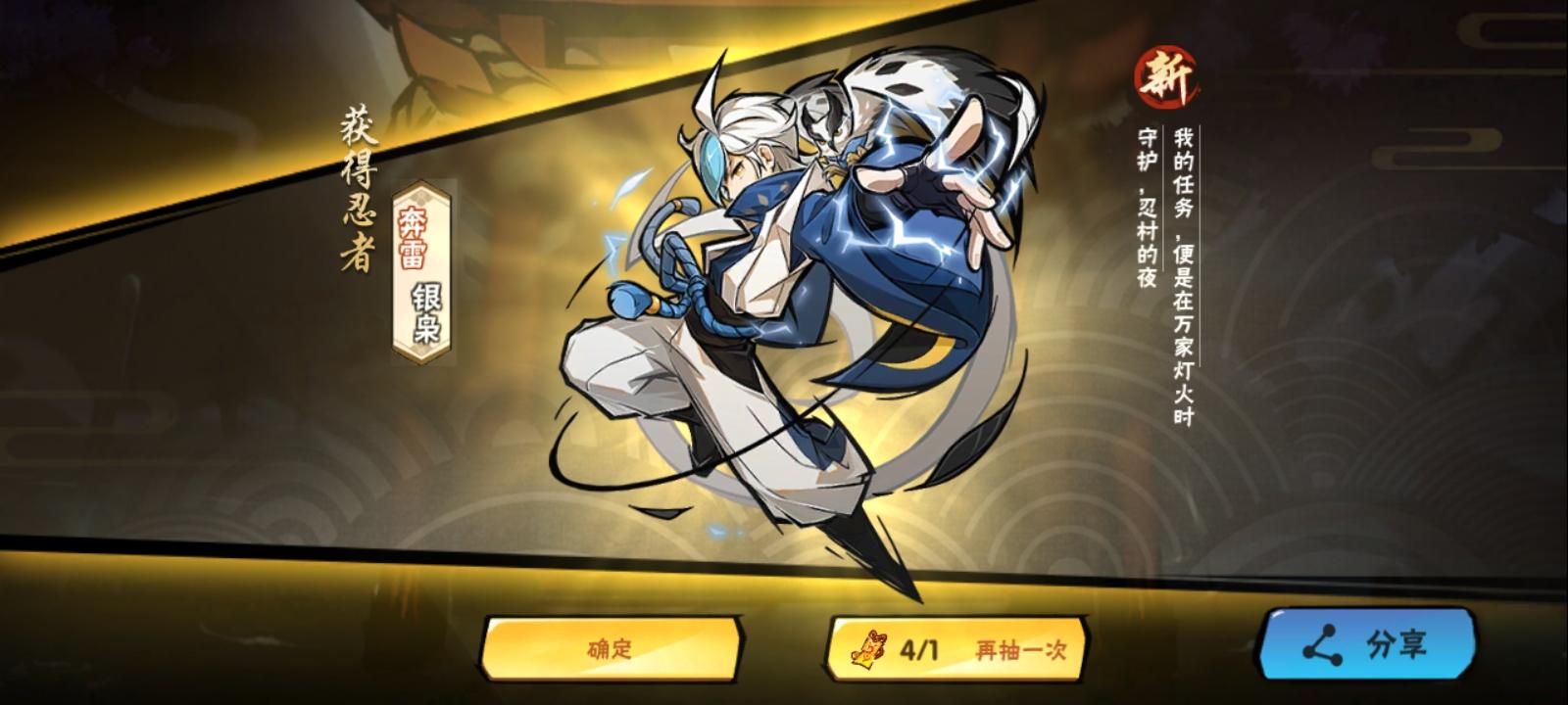 入坑整一年(去年十月入坑)忍宗可以3+3+1了,我这欧的方面倒也挺奇特纪念一下这神奇的一周,三天出三个忍宗还有武器池三金俩幻化一点没歪