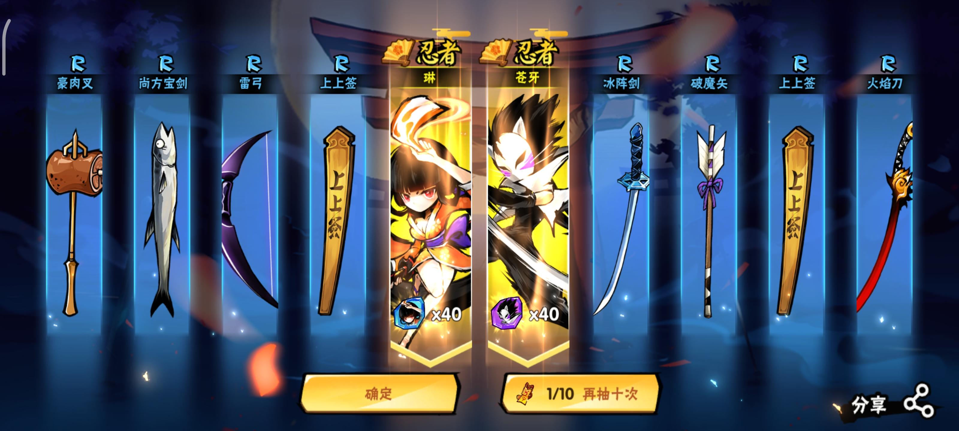 十连抽(之前已经抽到50多次了,出金概率高),给两个鸡肋,十连完了之后,活动快结束了,结束前一天晚上只剩5个符没攒到十连,寻思就直接抽了算了,结果出了两金。(我是阿力玩家,一直想抽超威,就是没抽到过,还是用碎片硬攒出来的,关键雷兽也没抽到过,如今第一次出超威,有点激动。)